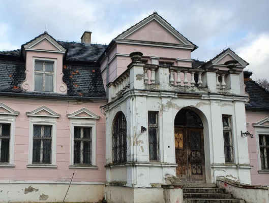 „Mazurek Dąbrowskiego”, słowa: Józef Wybicki, 1797 r., melodia: autor nieznany. Na zdjęciu majątek Wybickich w typowym dla III RP stanie zachowania zabytku.