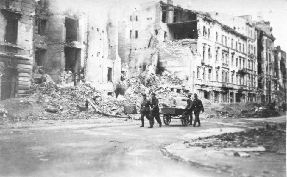 Niemcy podczas szabru w ruinach Warszawy, po X 1944 r. Fotografia z albumu Hermana Staake, niemieckiego policjanta z Piły. Fot. Muzeum Okręgowe w Pile Sygn. MOP-2960/10/Fot9