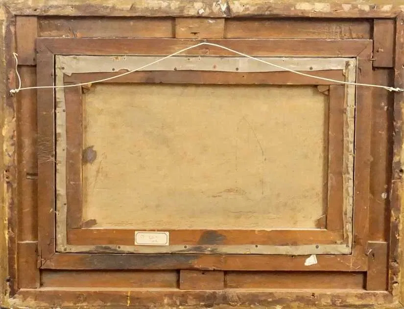 Praca oprawiona w wartościową, oryginalną, zdobioną XIX-wieczną ramę, z widocznymi ubytkami właściwymi dla wieku. Są one niewidoczne od przodu obrazu. Z tyłu obrazu stara naklejka i pozostałość drugiej.