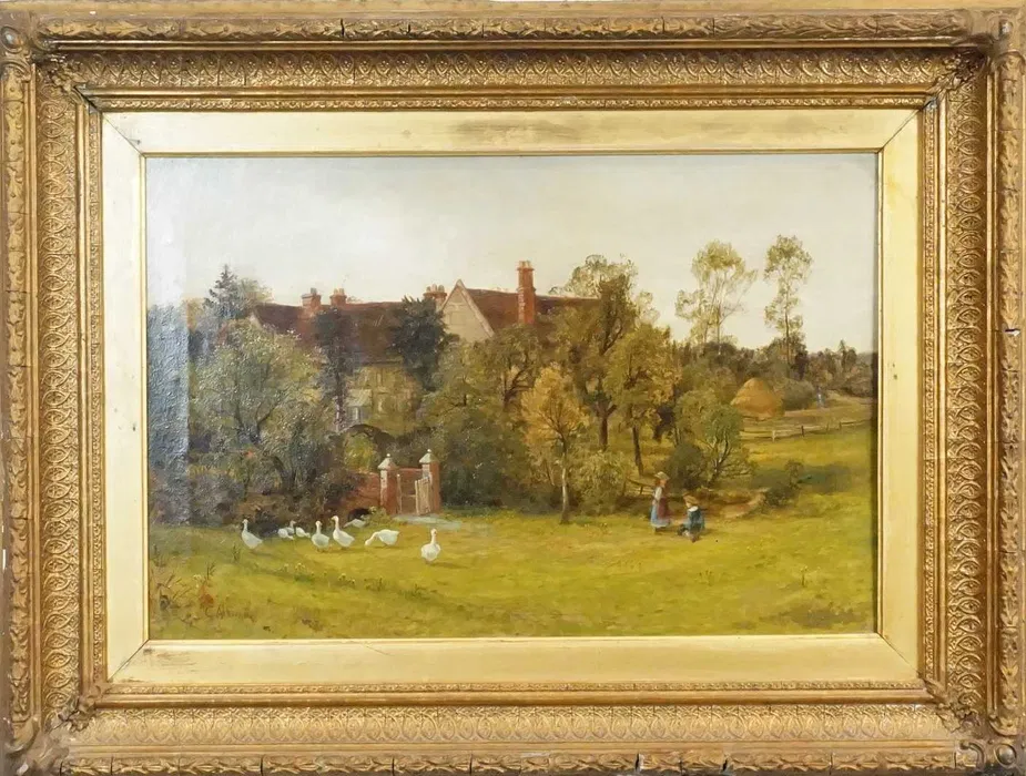 ![George Aikmann [1830-1905] "Gęsiarka" obraz olejny na płótnie, 74x56 [rama]; 52 x 34 [płótno], sygnowany l./d. - wkrótce dostępny w sprzedaży - obrazek 4](https://antyki.pro/wp-content/uploads/2024/05/image-1.webp)