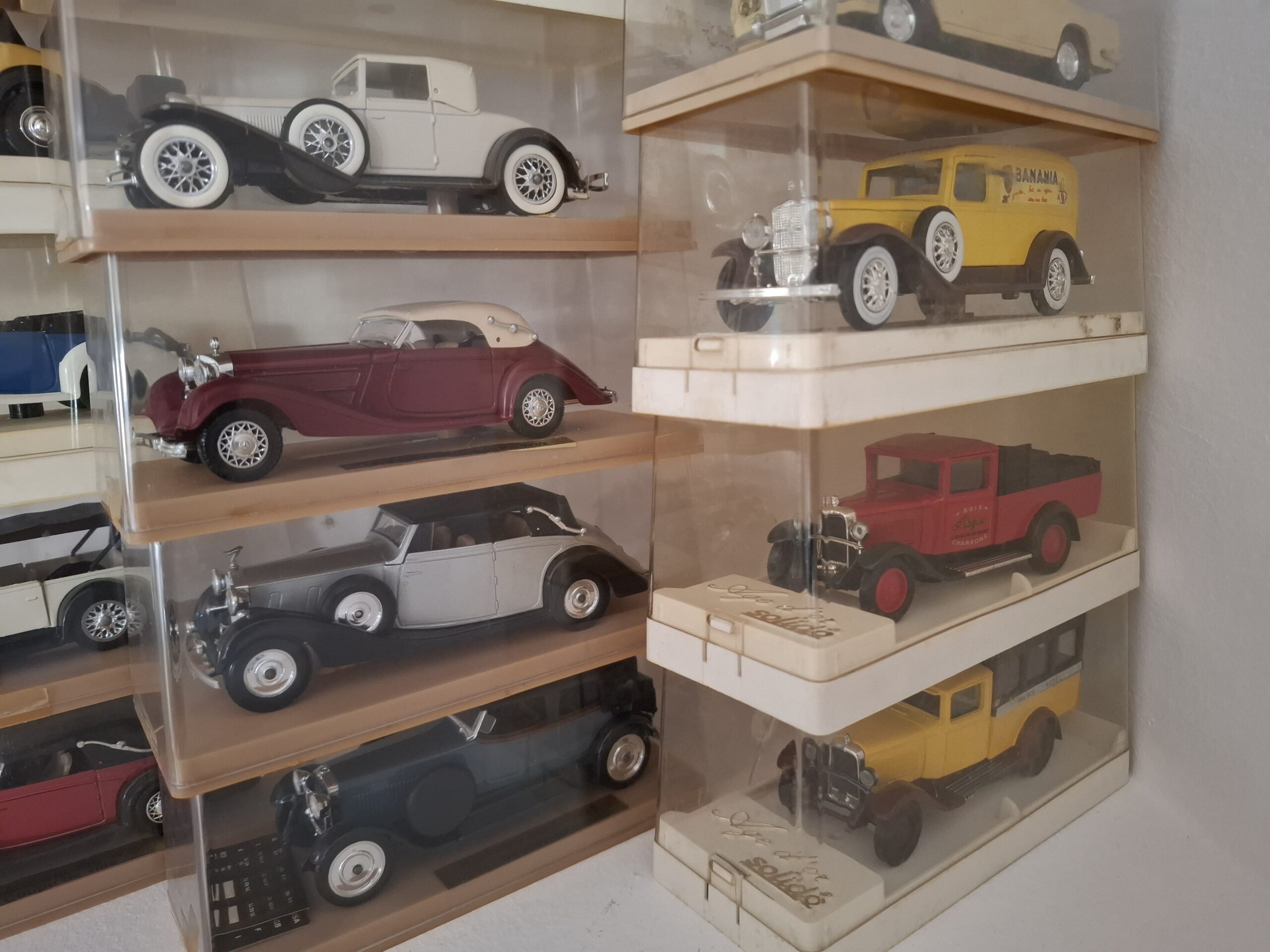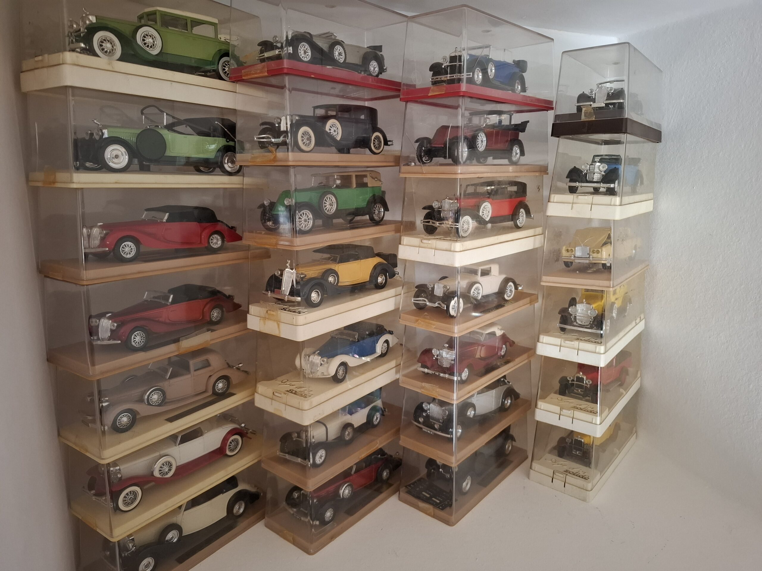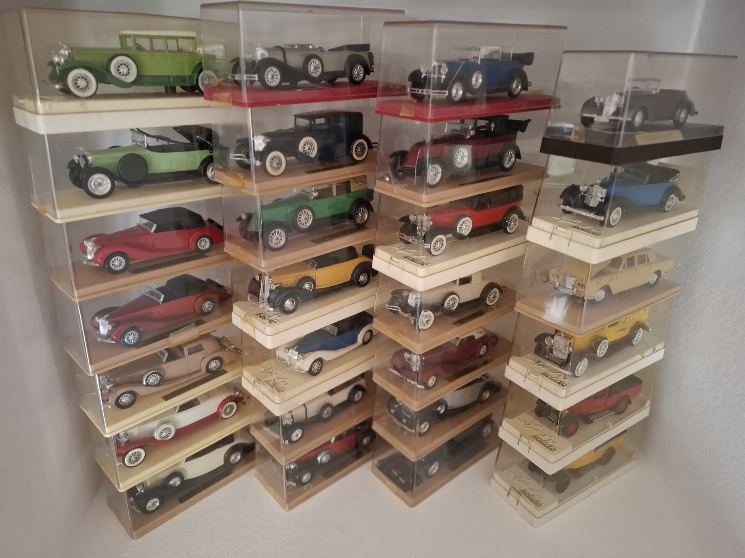 27 modeli samochodów Solido, w pudelkach, w tym: Cadillac 452, Rolls Royce 1939, Hispano Suiz 1926, Duesenberg 1931, Fiat 525 1929, Packard Super Eight, Cadillac Commerciale, Delage D8 1939, Renault 1926, Mercedes Cabriolet, Delage DB 1939,
