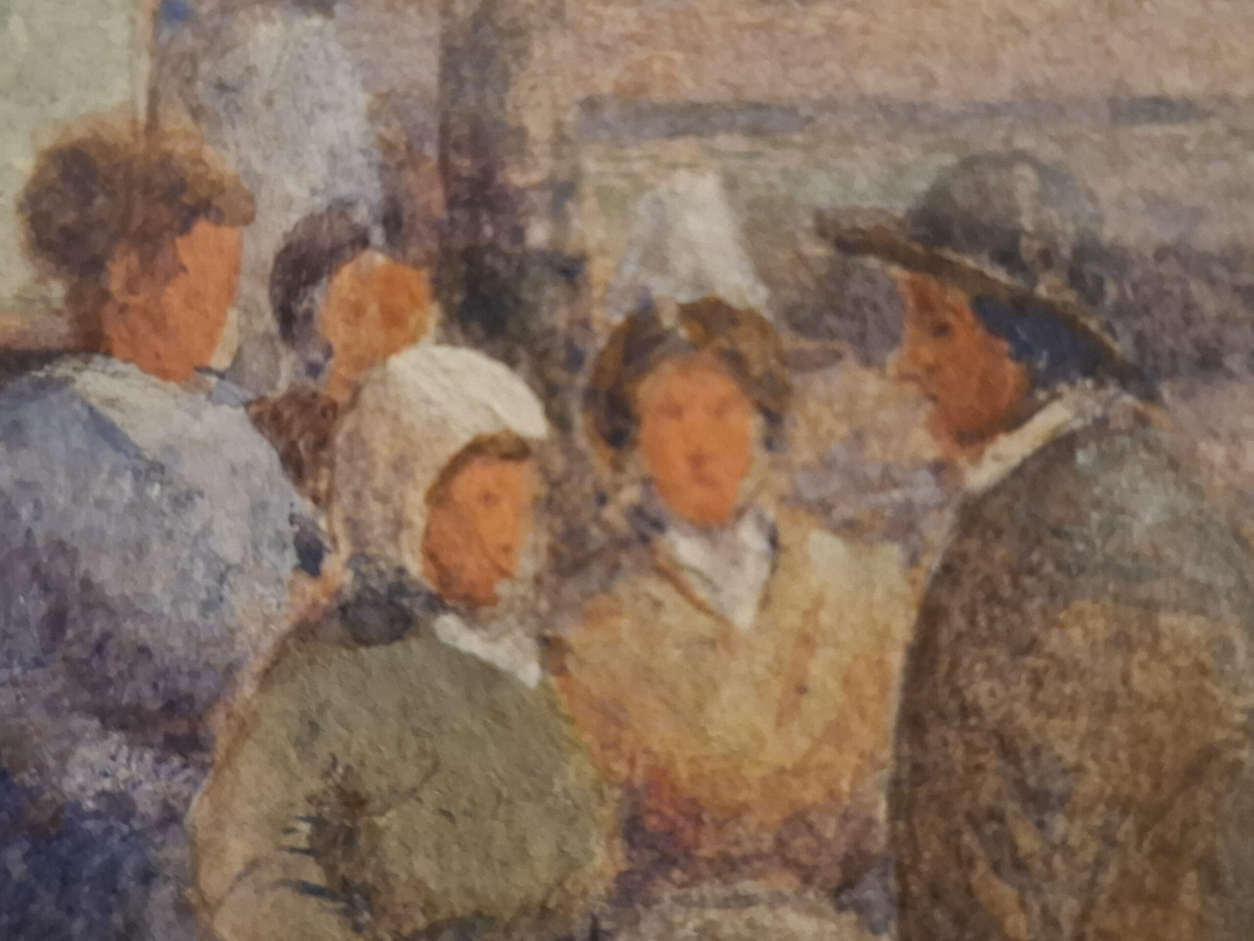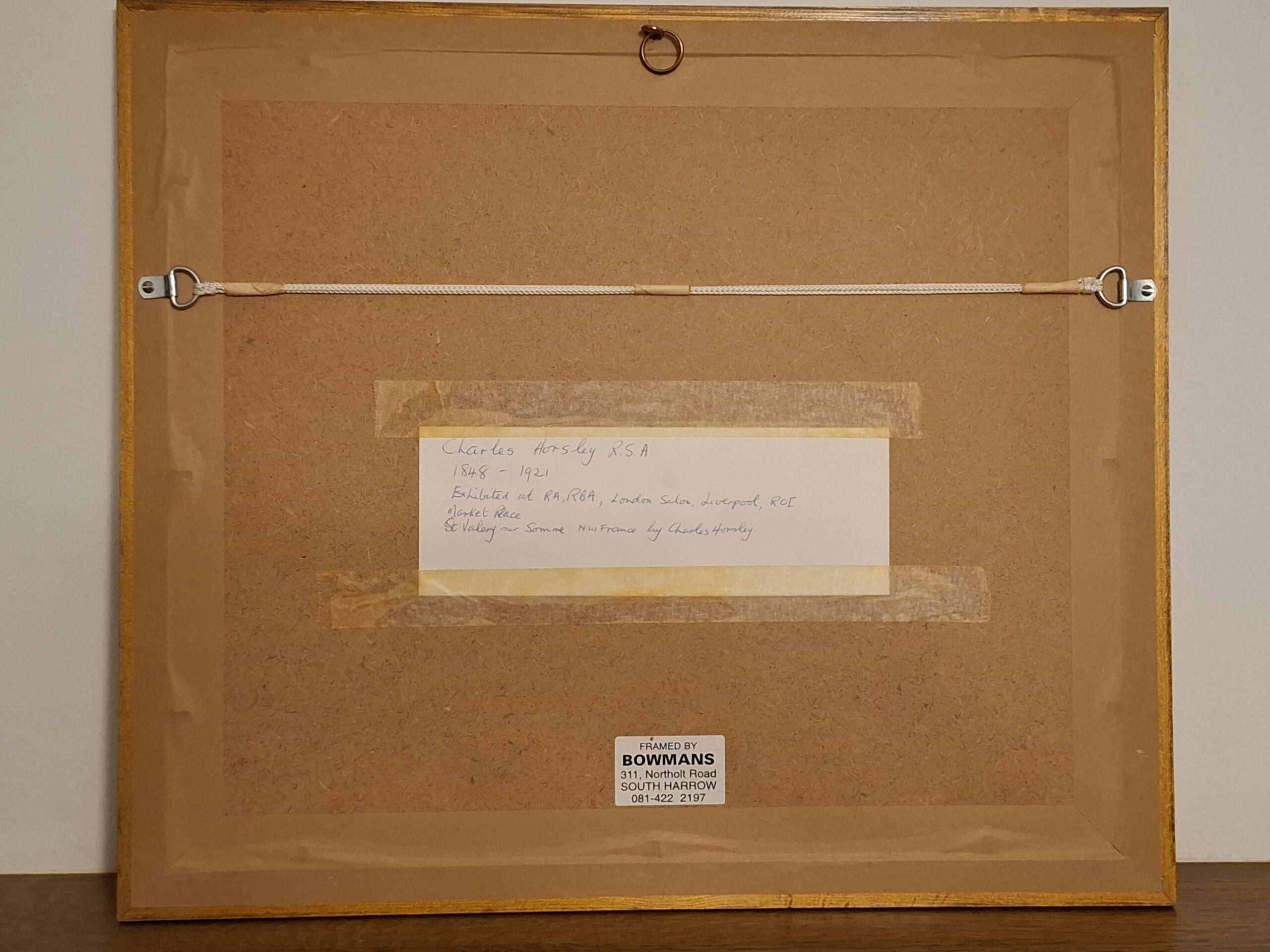 Zgodnie z opisem na odwrocie jest to akwarela Waltera Charlesa Horsleya. Autor wystawiał swoje prace w Royal Academy, London Salon, Royal Society of British Artists (RBA) i Royal Institute of Oil Painters (ROI)
