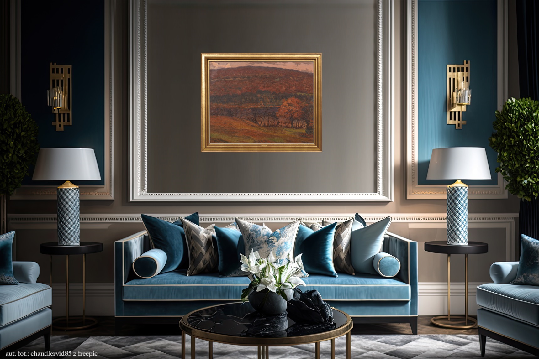 Duży obraz olejny na płótnie, 73 x 90 cm, „Krajobraz jesienny”, sygnowany Axel Theodor Kulle (1882- 1964). Ciekawa faktura, grubo nakładana farba, solidna złocona rama. Antyk, ale w bardzo dobrym stanie jak na swoje lata. Obraz był pokazywany w 1922 r. na wystawie w w galerii sztuki Liljevalchs. Artysta Axel T. Kulkę był często notowany na aukcjach, przykładowe na zdjęciach. Na odwrocie fragment naklejki.