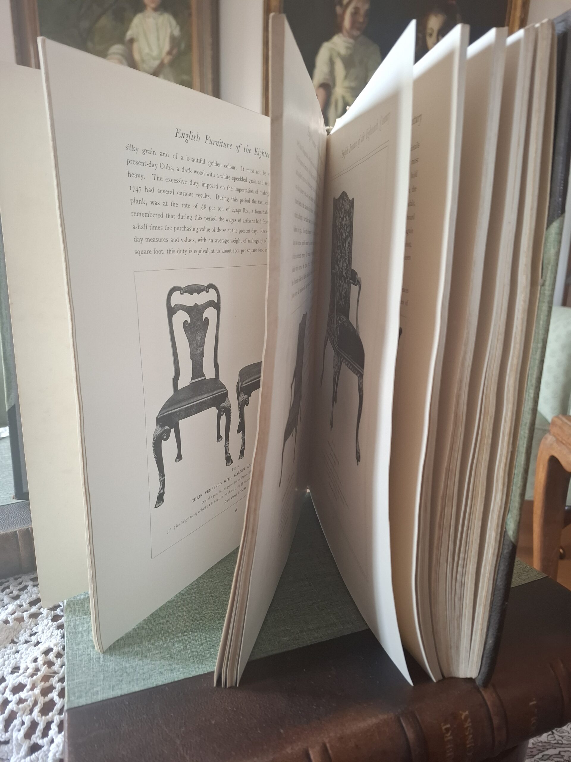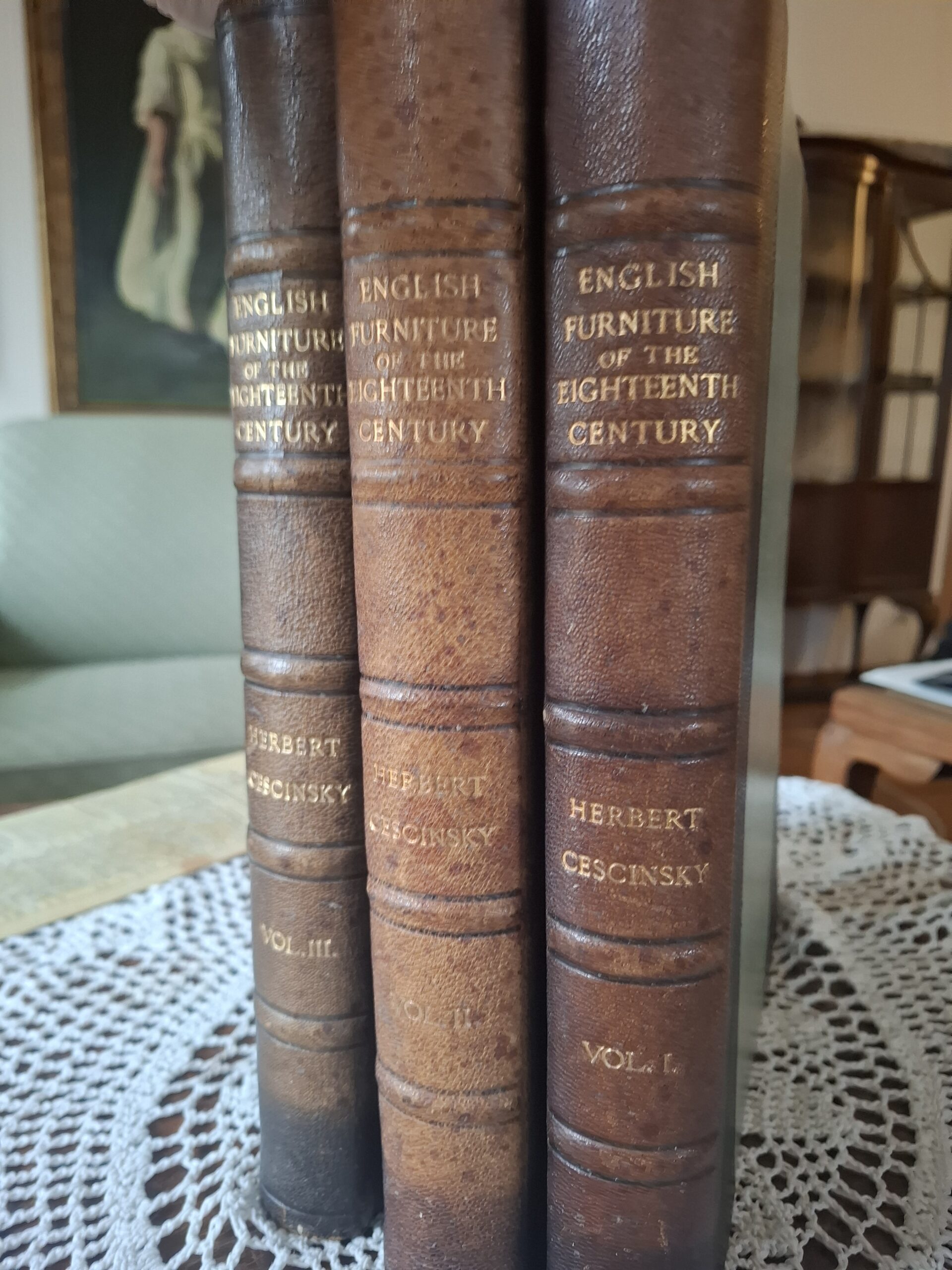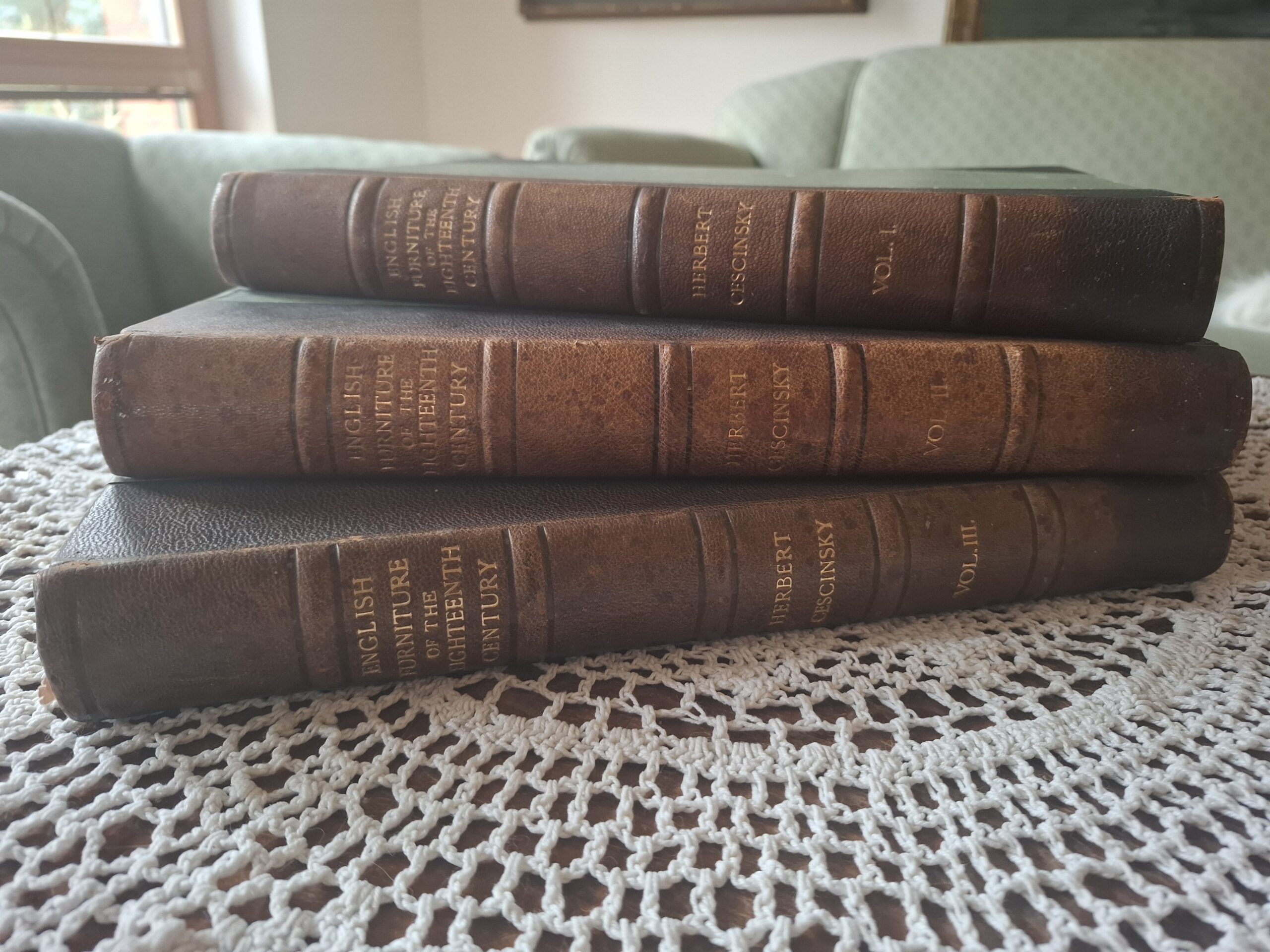 Wczesna edycja monografii English Furniture of the Eighteenth Century aut. Herbert Cescinsky. Bogato ilustrowana publikacja w 3 tomach.