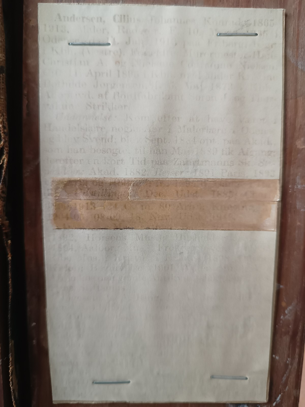 Przepiękny, doskonały obraz duńskiego malarza Ciliusa Andersena o wymiarach płótna 45×35 cm, w złoconej, stylowej ramie. Na dole znajduje się tabliczka grawerowana „C. Andersen”. Na odwrocie przyklejono notkę biograficzna artysty, która jest nieco wyblakła z powodu upływu czasu. Obraz posiada dołączoną ekspertyzę konserwatora z 2 października 1976 r.