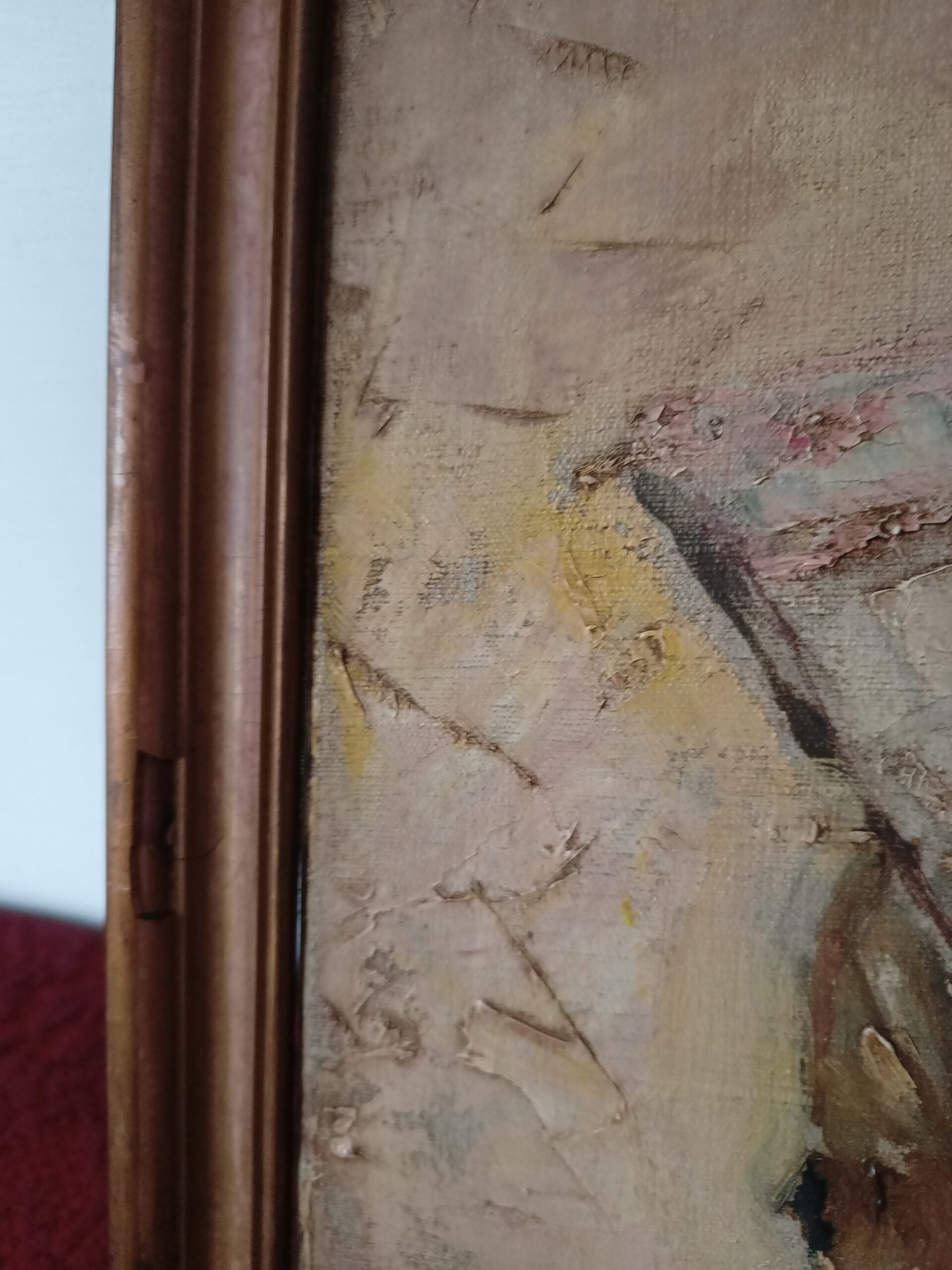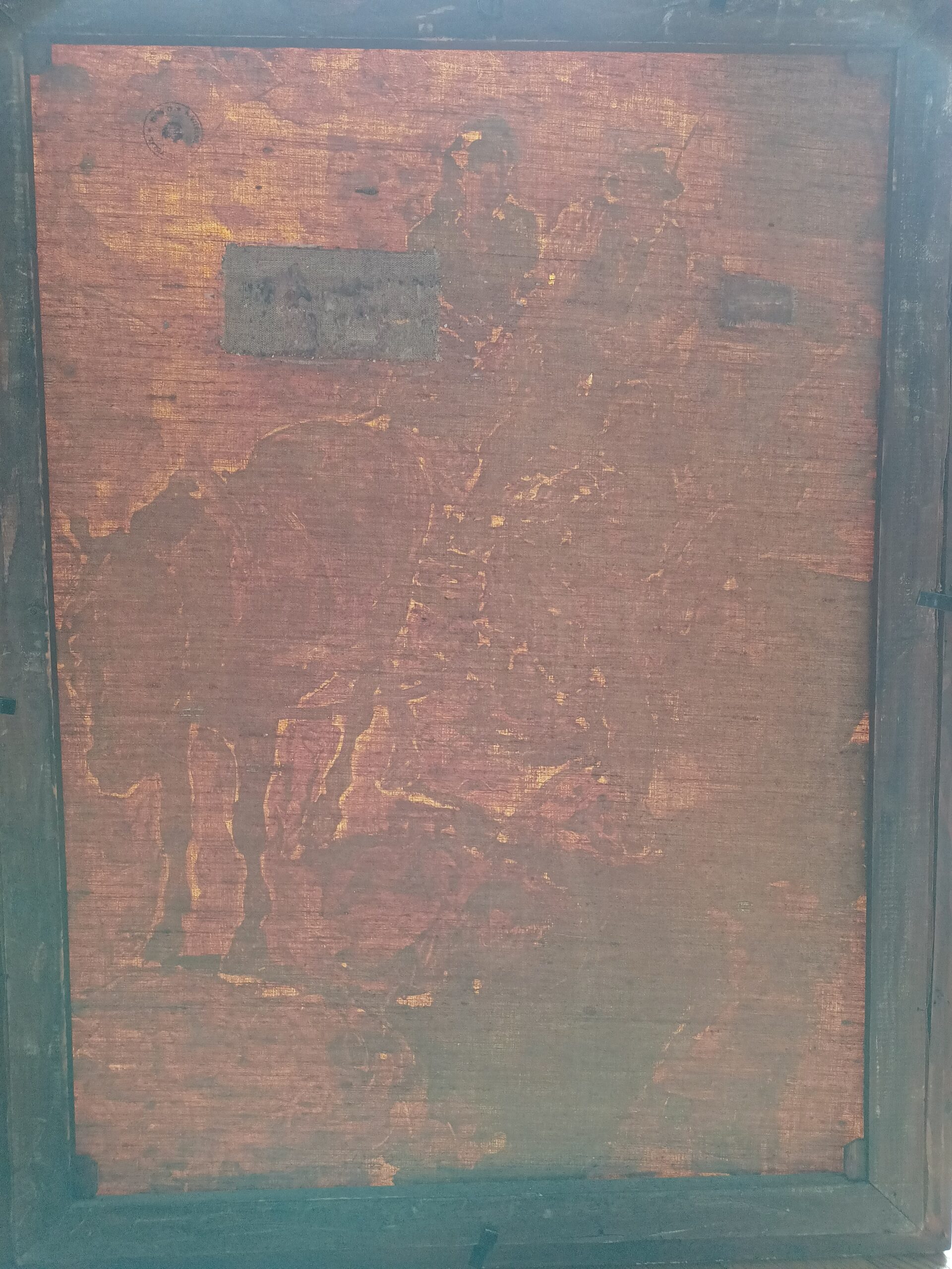 Rama posiada wgniecenie widoczne na zdjęciu. Na odwrociu widoczne dwie stare łatki po naprawie. Widoczna także nieustalona pieczęć. Część zdjęć zrobiona pod światło, aby widać było ewentualne przemalowania lub uszkodzenia płótna.