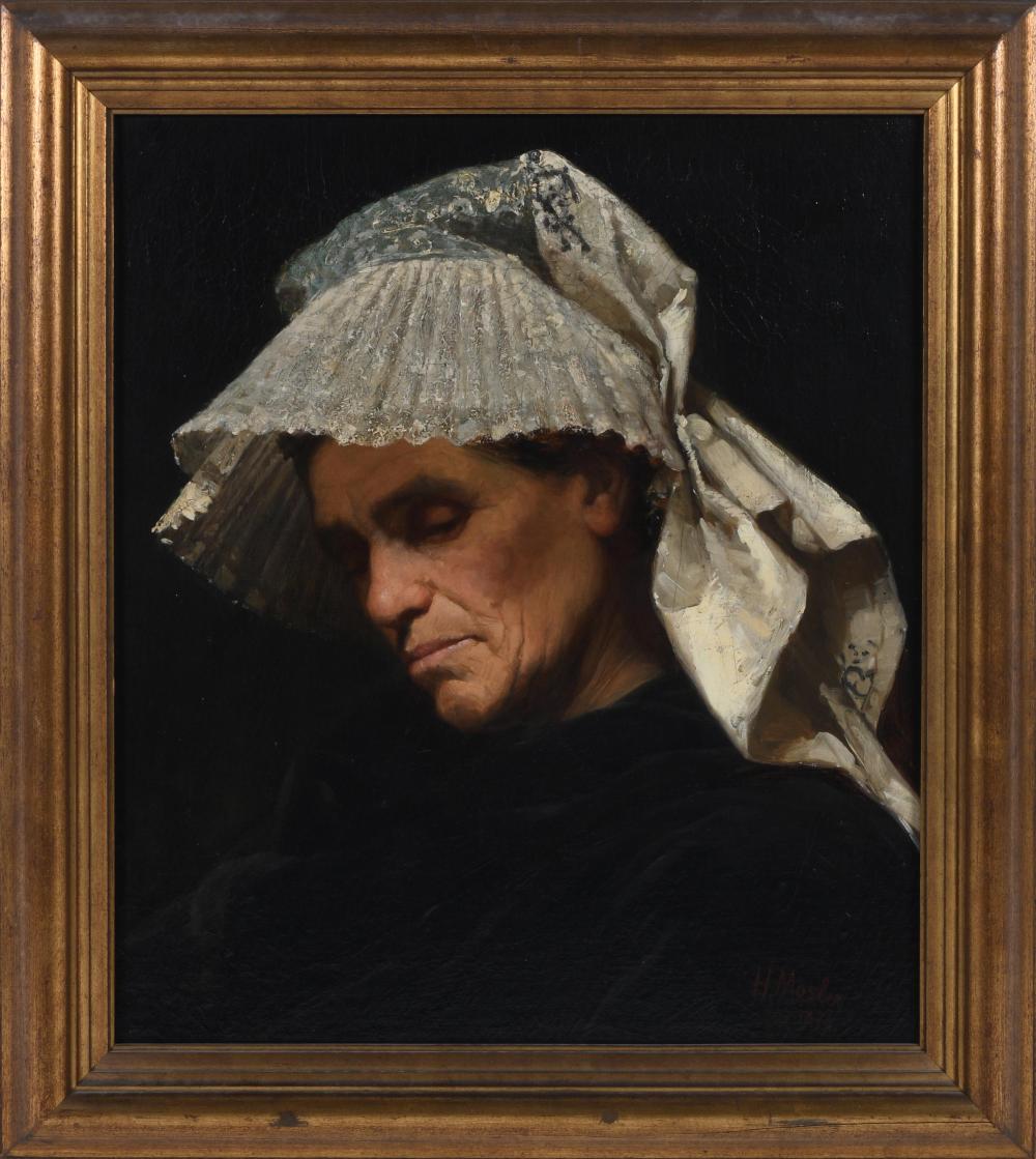 „Stara Bretonka w czepku” z 1876 r., obraz olejny na płótnie o wymiarach 58 x 50 cm [płótno], 70×62 cm [rama], podpisany i datowany w prawym dolnym rogu „H. Mosler/1876”, zakupiony z kolekcji Diany Edwards Murnaghan, USA