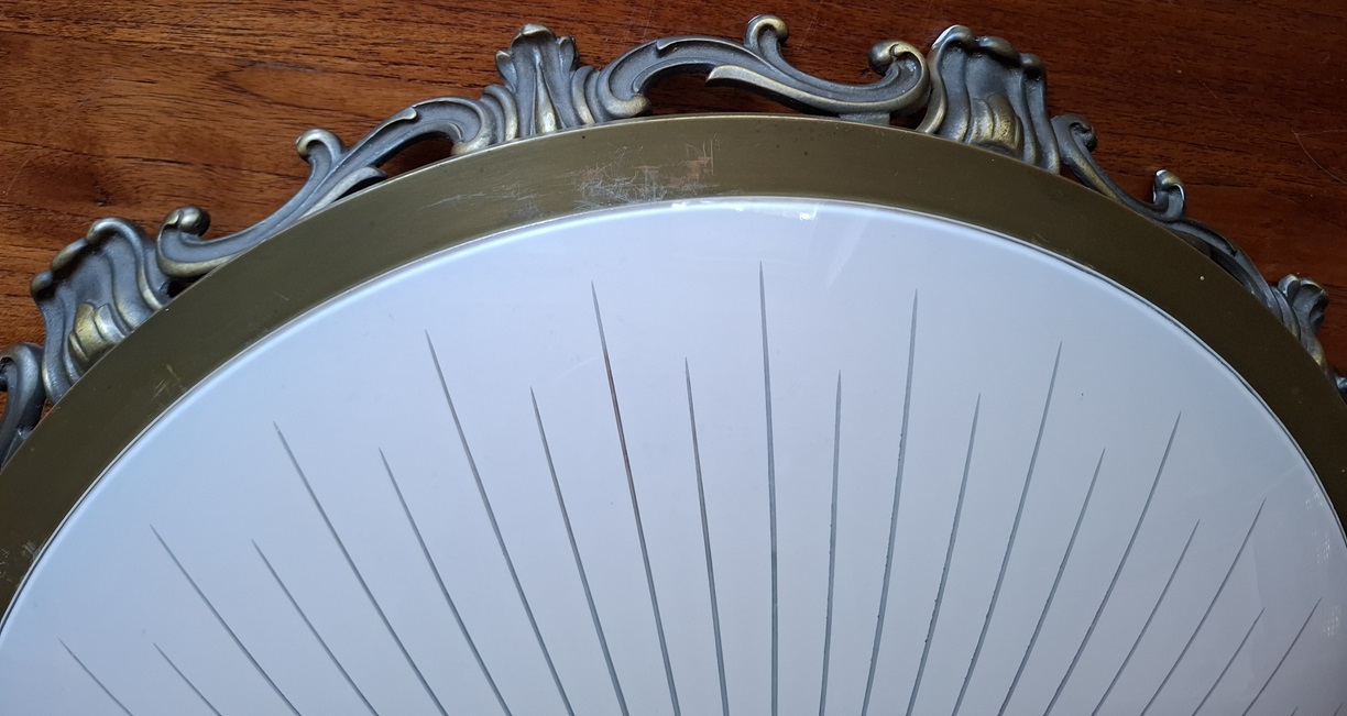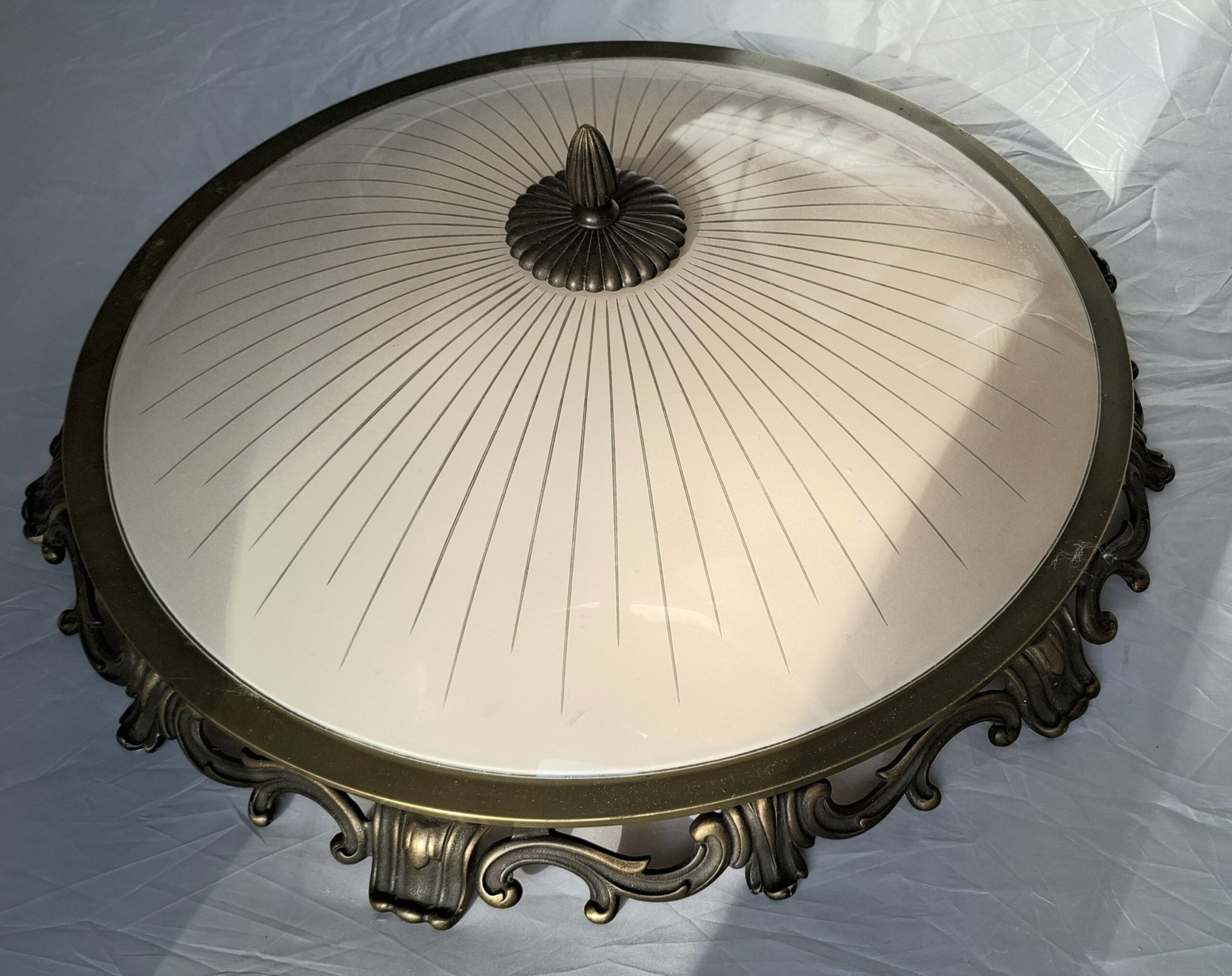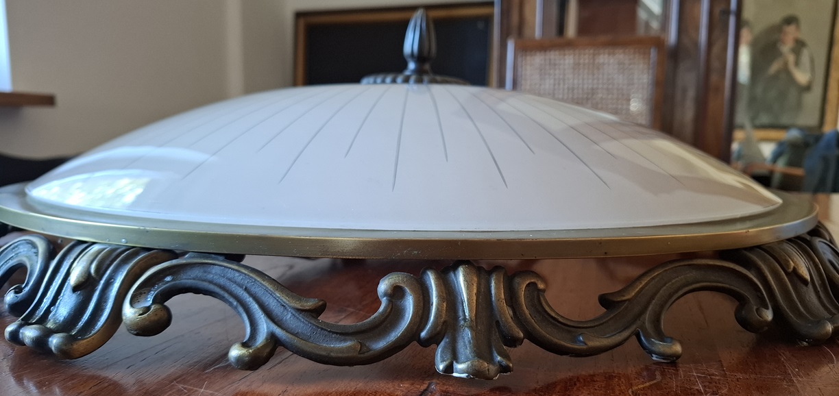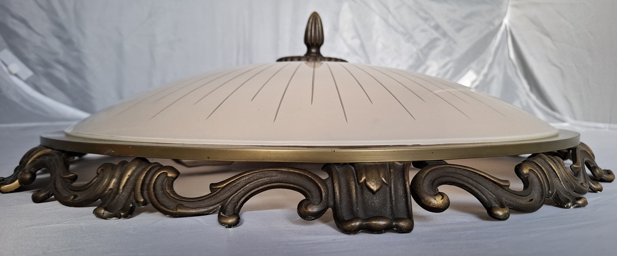 Lampa sufitowa, plafon pałacowy, art deco pałacowy, średnica 60 cm, wys. 20 cm, ciężki miedzianym, pełny zdobiony otok, lekkie zadrapania widoczne na zdjęciu.