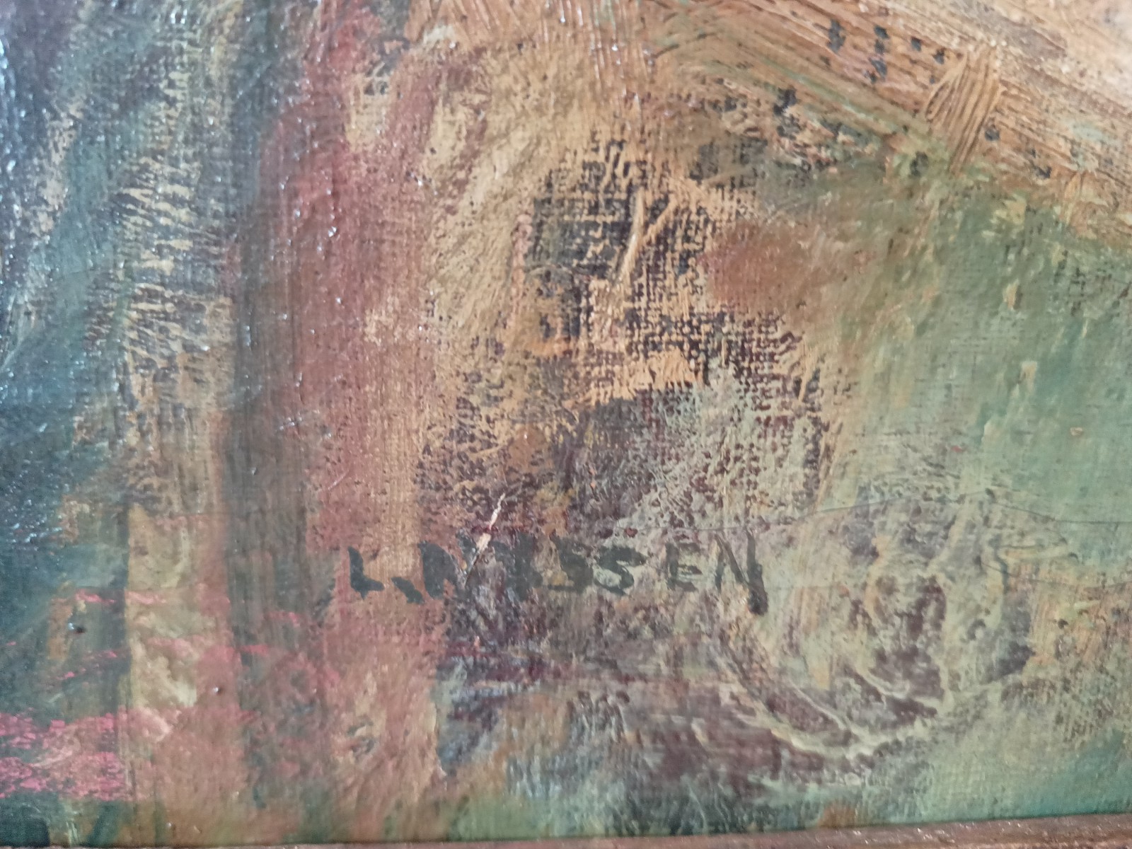 Obraz sygnowany w lewym dolnym rogu: L. Nilssen. Prawdopodobnie jest to obraz Leifa Samuela Johana Nillsena ur. 7 października 1911 r. w Drammen. Data śmierci nieustalona. Nielssen był uczniem znanych norweskich artystów Augusta Eiebakke, Eivinda Nielsena, Pera Krohga i Olafa Willumsa.