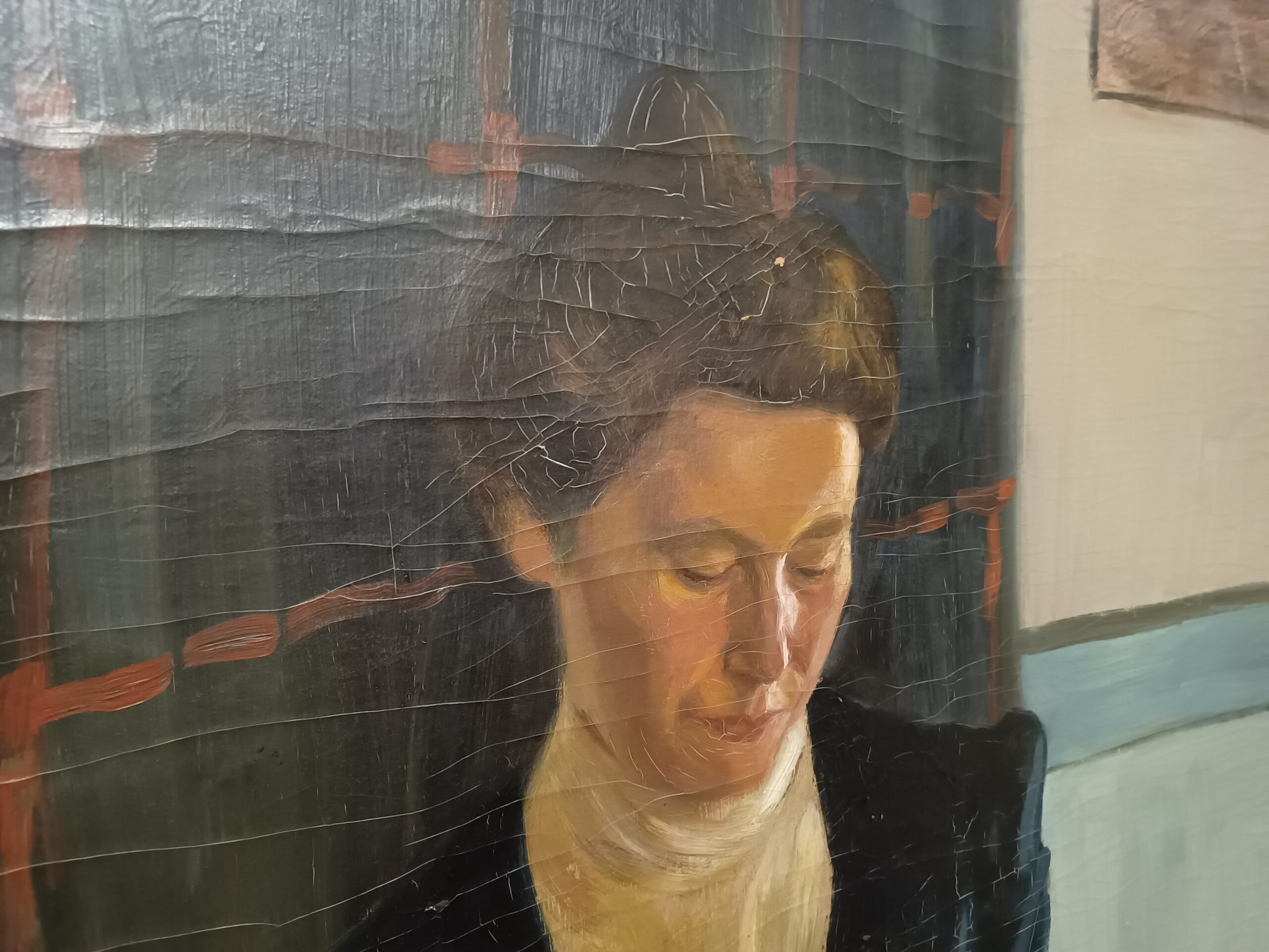 Johan Mauritz Lindqvist (1884-1941) „Krawcowa”, obraz olejny na płycie 96×82 cm – wkrótce dostępny w sprzedaży