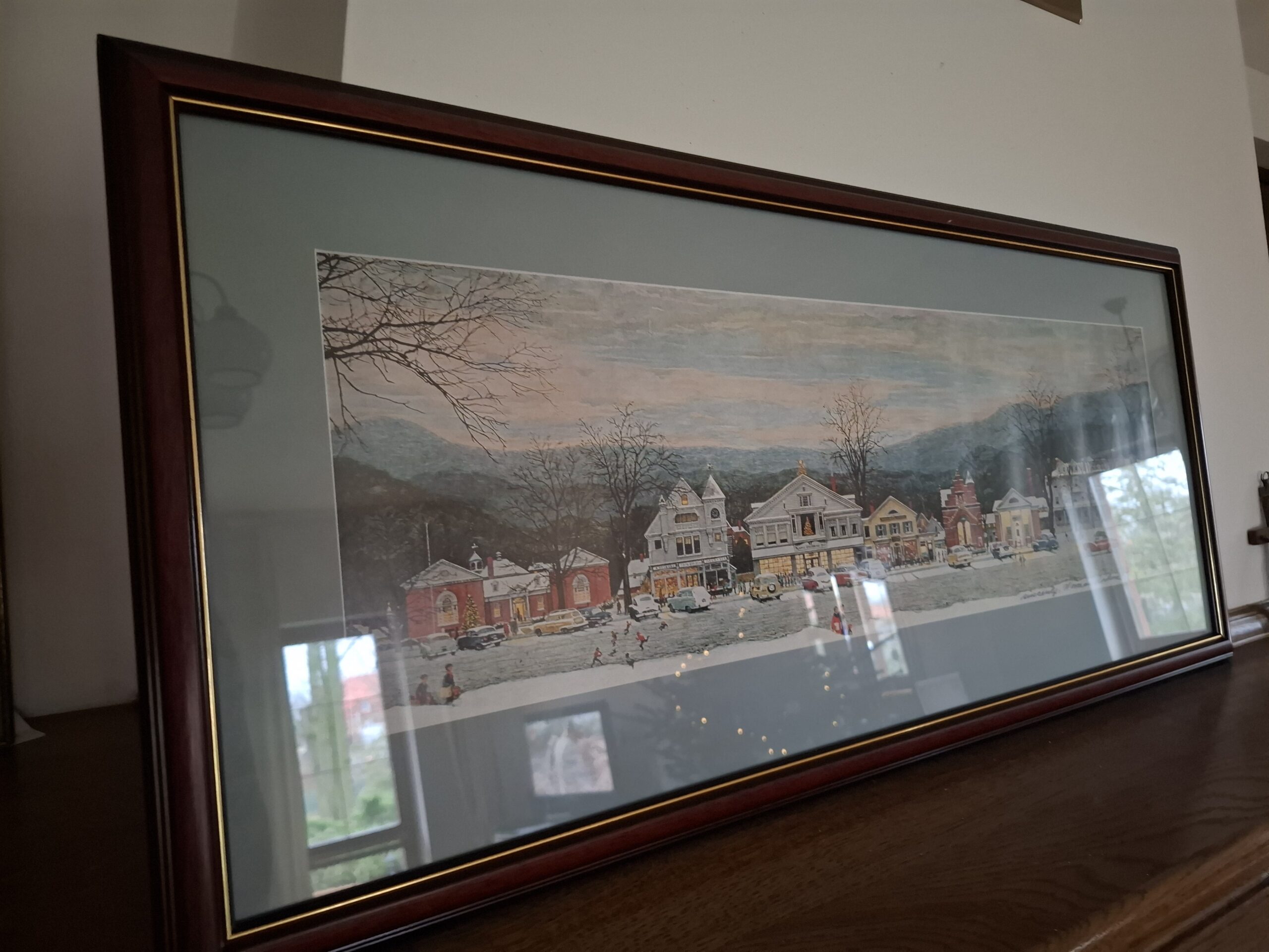 Norman Rockwell, “Stockbridge Main Street at Christmas” 1967 r., litografia z odręczną dedykacją autora, wym. 87,5 cm x 38,5 [rama], 72x 22 cm [papier] – wkrótce dostępna w sprzedaży