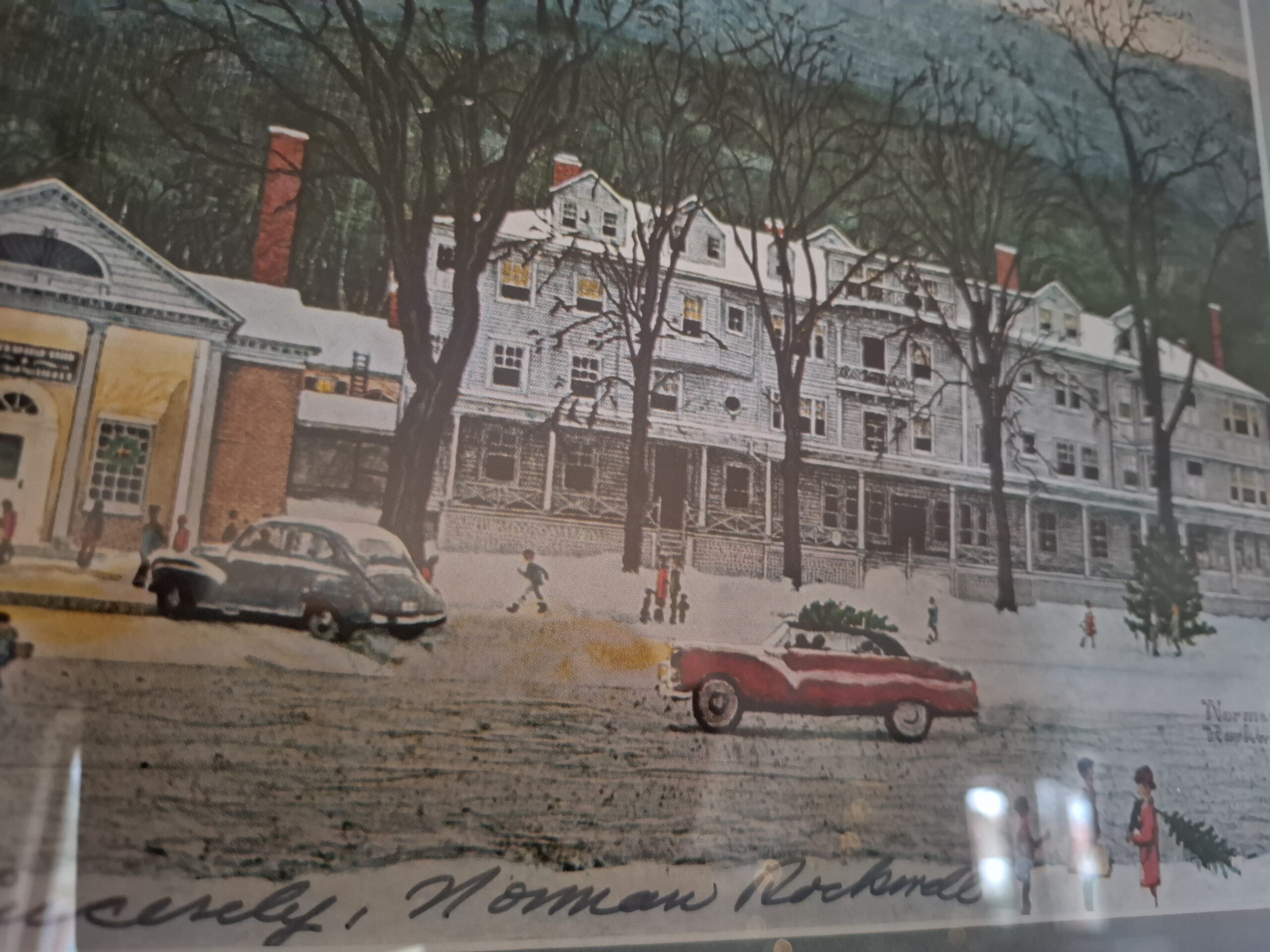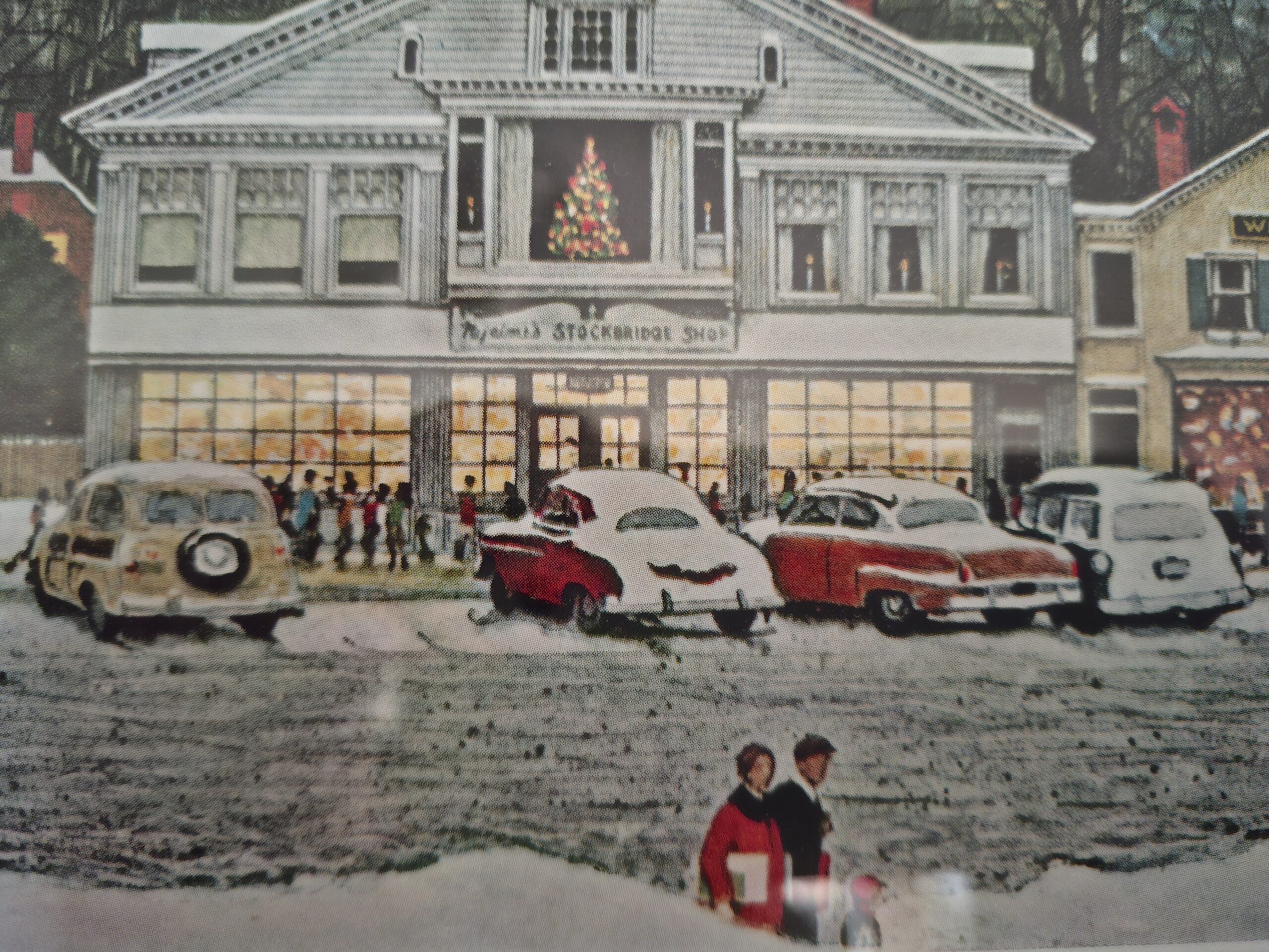 Obraz “Stockbridge Main Street at Christmas”, jako jeden z niewielu krajobrazów, które wyszły spod pędzla Normana Rockwella, ukończony został w 1967 r. Przedstawia małe miasteczko w stanie Massachusetts [Nowa Anglia], w którym malarz spędził ćwierć wieku. Bajkowa sceneria świątecznie ustrojonego miasta, w którym mieszkańcy robią ostatnie świąteczne sprawunki, w tle panorama ośnieżonych gór.