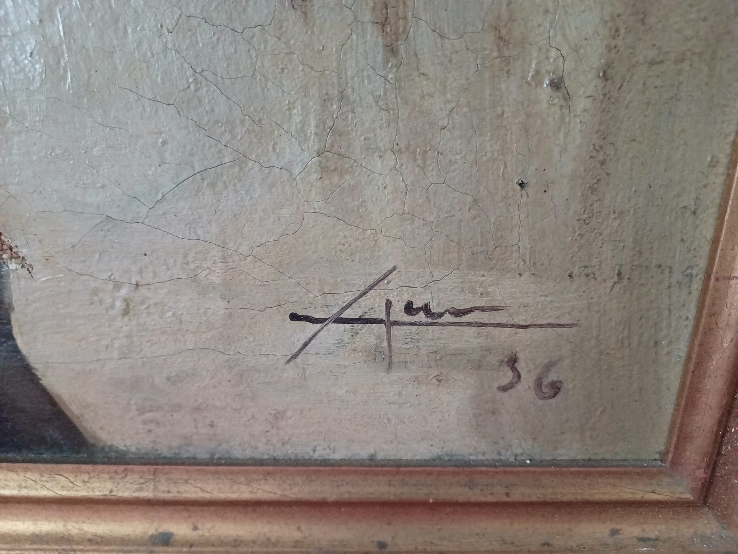 Stary obraz olejny na płótnie o wymiarach 71×92, płótno 60×82, antyk sygnowany, z 1936 r. prawdopodobnie włoskiego artysty.