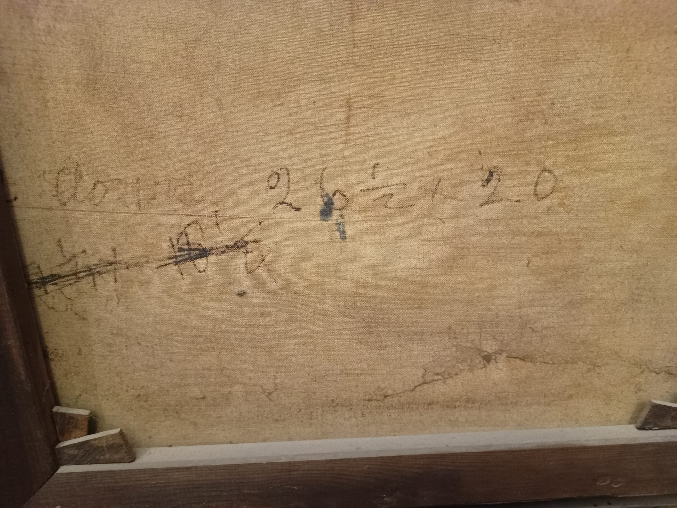 ![Obraz olejny na płótnie, "Hiszpanka", wym. 58x48 cm [rama], malarz nieznany, sygnatura z tyłu "Wilkie" [Dawid Wilkie?]; wkrótce dostępny w sprzedaży - obrazek 4](https://antyki.pro/wp-content/uploads/2024/07/IMG_20240219_183257868-scaled.jpg)