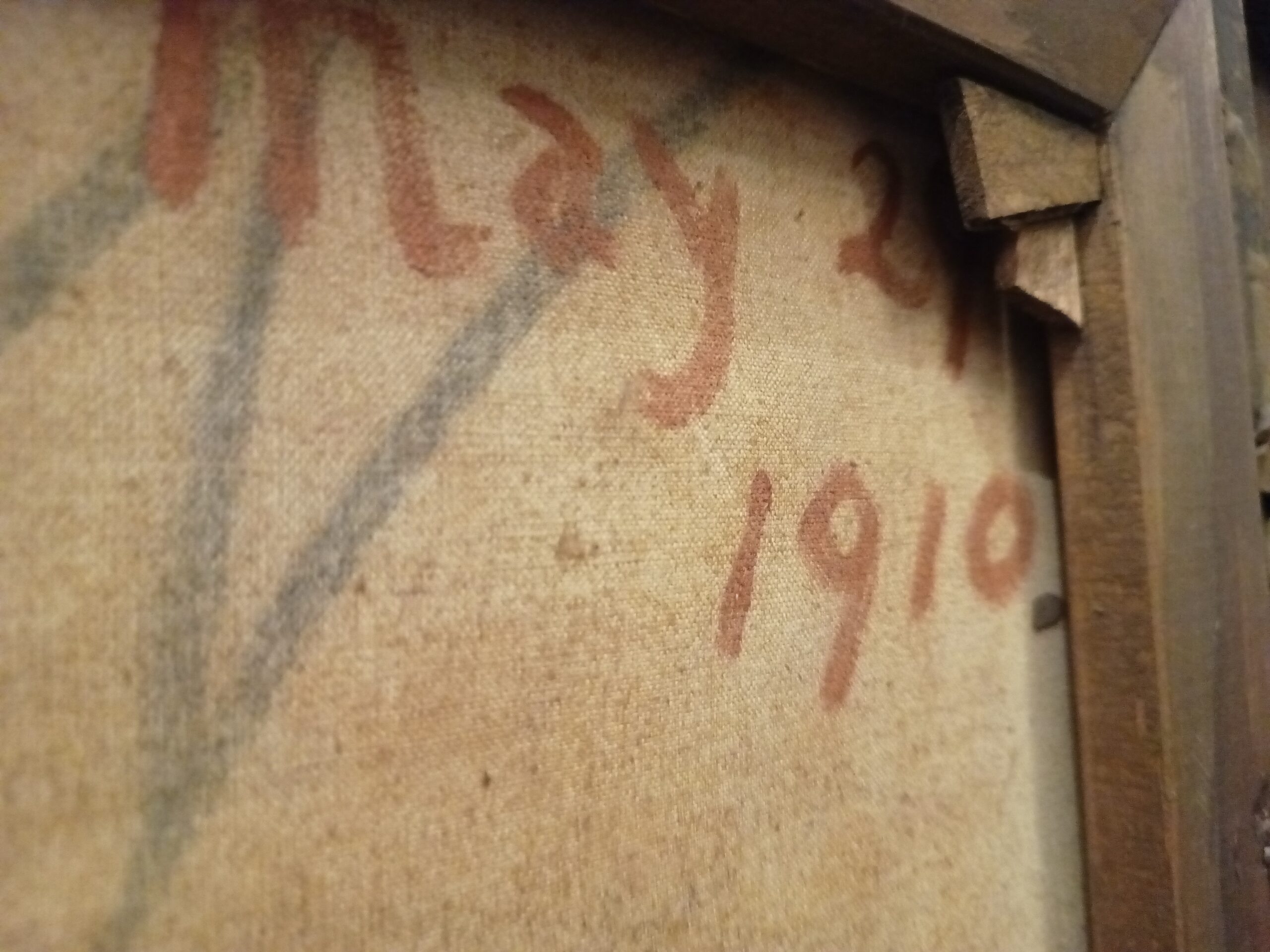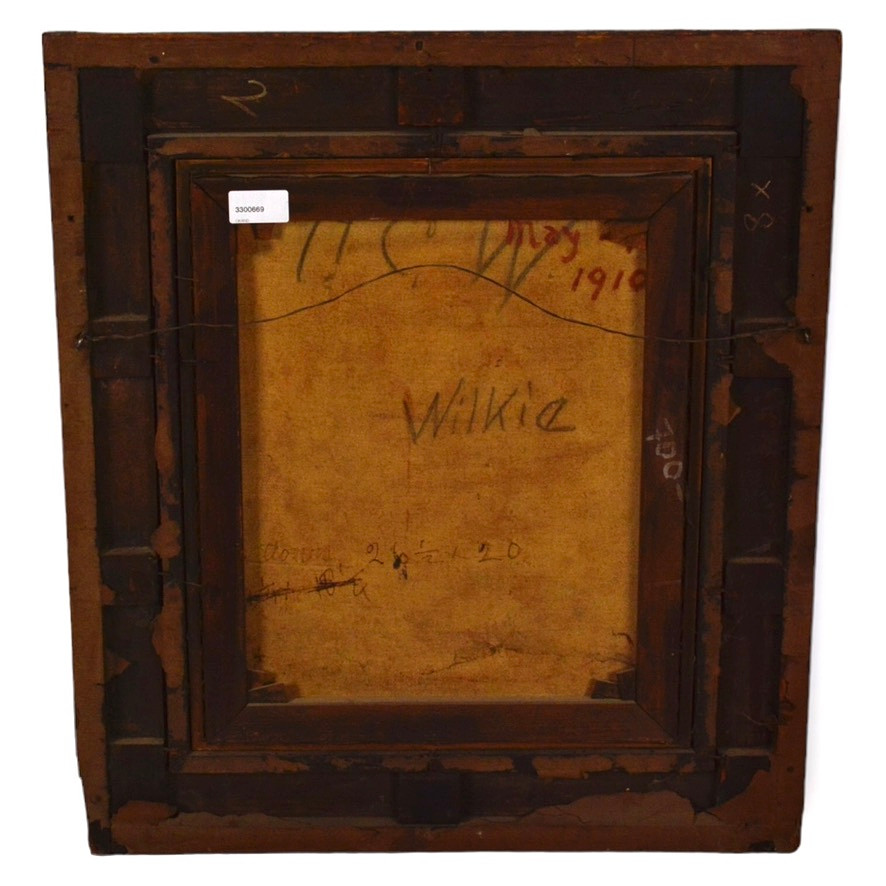 Obraz olejny na płótnie 58×48 cm w pięknej ramie, nieznanego malarza. Na odwrocie posiada napis ‘Wilkie’ naniesiony prawdopodobnie ołówkiem. Kto uważnie przyjrzy się sygnaturom Davida Wilkiego z jego innych obrazów z pewnością dostrzeże podobieństwa. Natomiast w prawym górnym rogu zauważymy wyraźnie nakreśloną czerwoną kredką datę – May 21 1910. Kolejną zagadką są litery H C W umieszczone nad wyrazem Wilkie. Mogą być one kojarzone z innym malarzem Walterem Charles’em Horsley’em (ur. 1855 r. ), który nie mógł znać Wilkie’go osobiście]. Autorstwo obrazu pozostaje zagadką, chociaż niewykluczone, że jest to kolejna praca sir Davida Wilkie’go z jego kontynentalnej podroży.