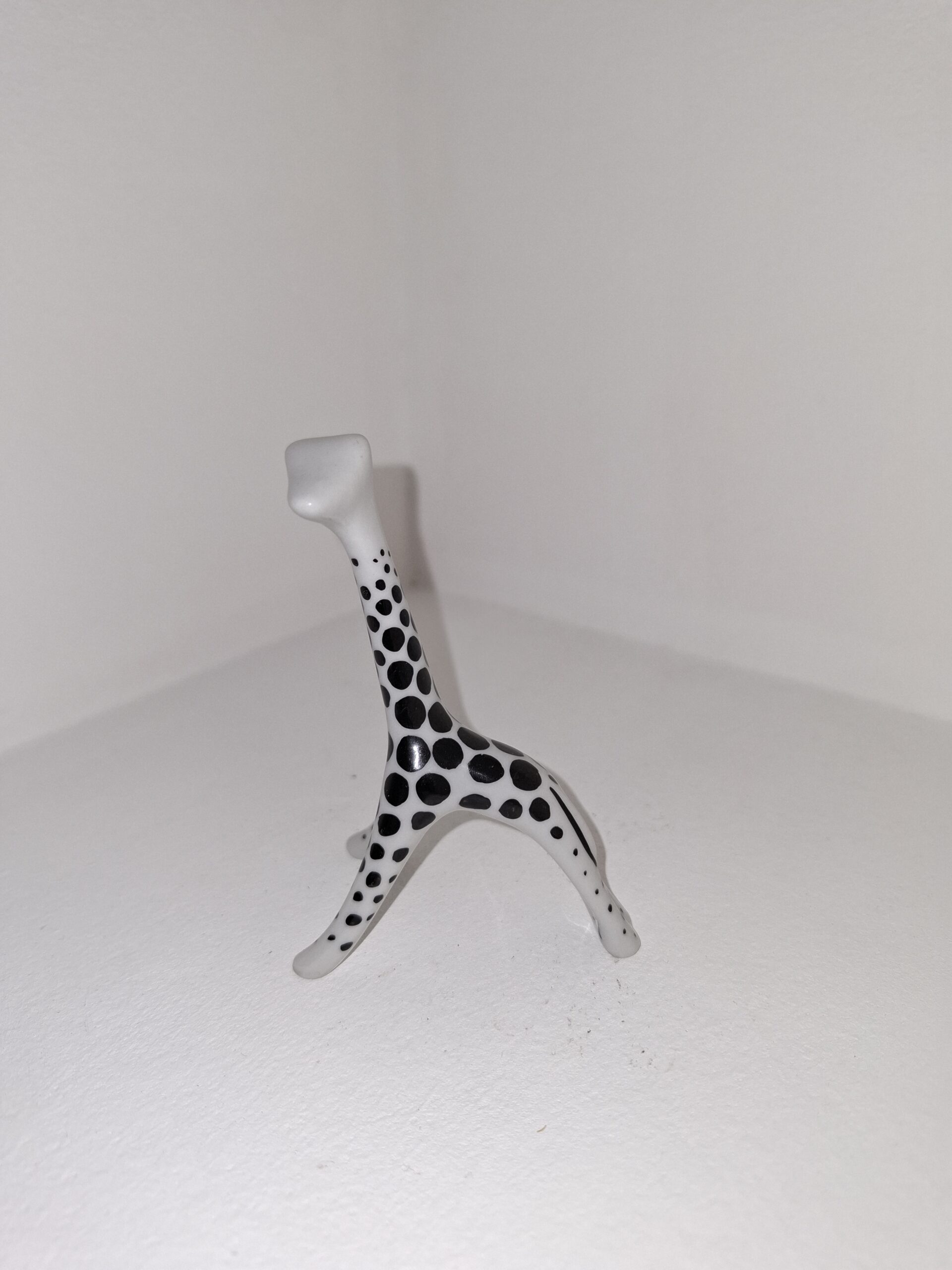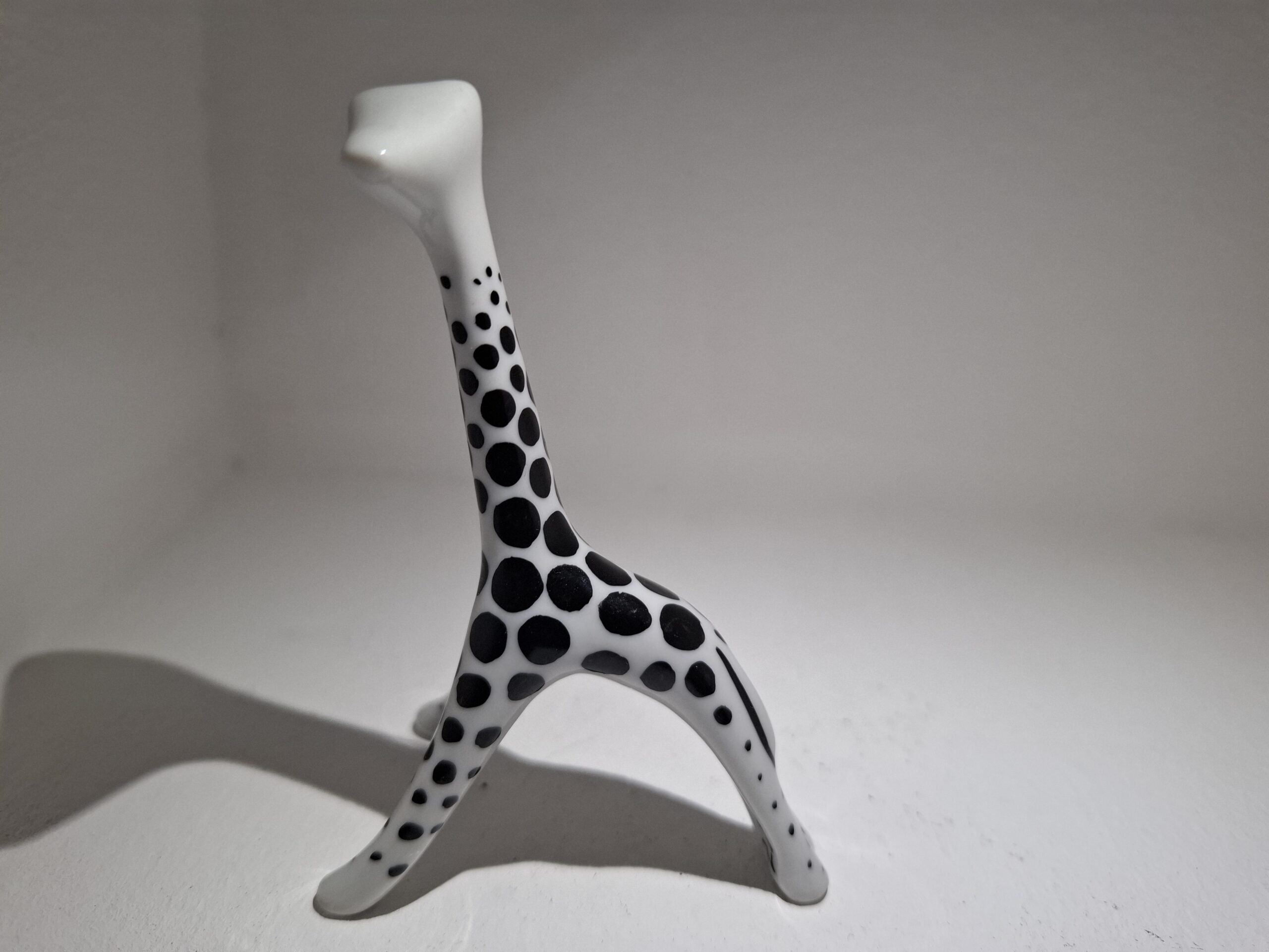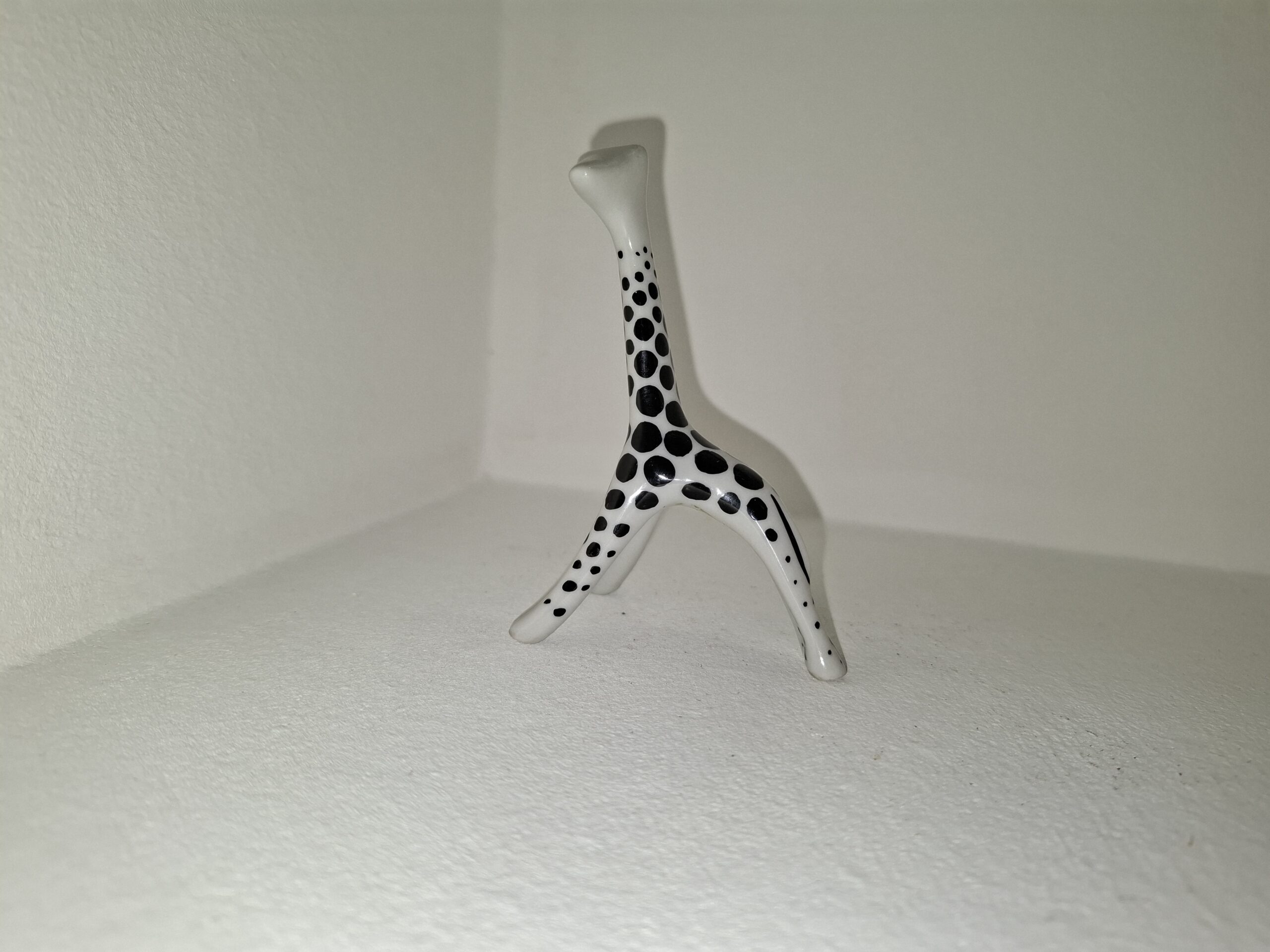 Oryginalna figurka żyrafy projektu Hanny Orthwein, Ćmielów l. 60 ub. wieku, ręcznie malowana porcelana, wys. 10 cm, bez uszkodzeń i zadrapań