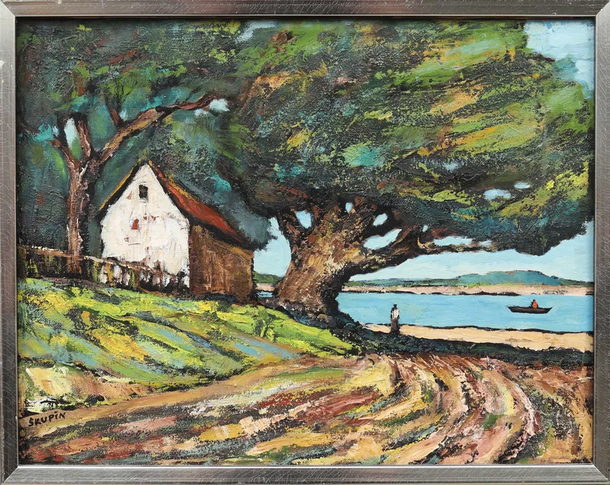 Ryszard Skupin [1930-2005] „Krajobraz polski”, obraz olejny na płótnie, wym. 50 x 38 cm [rama], sygn. l./d.