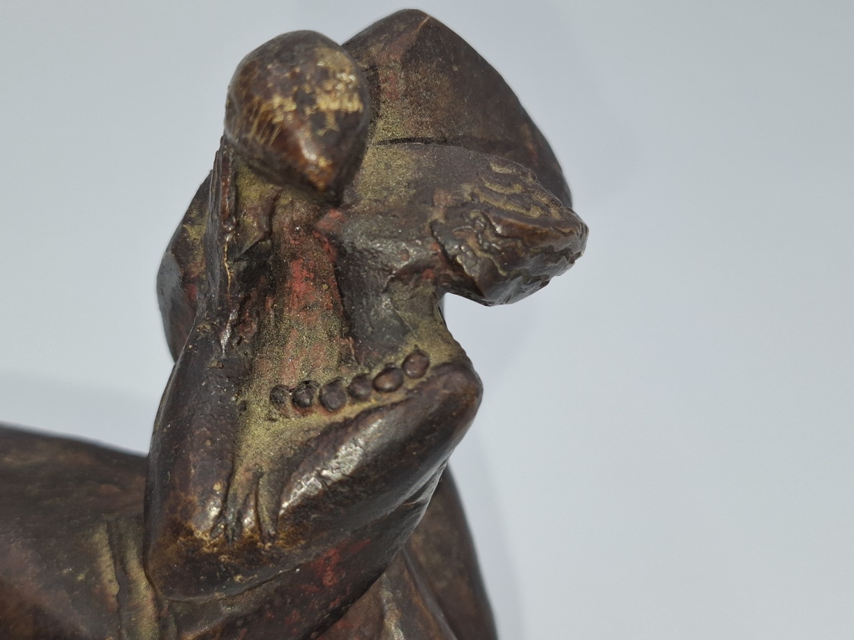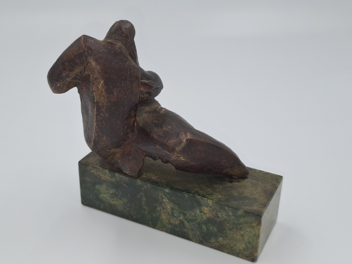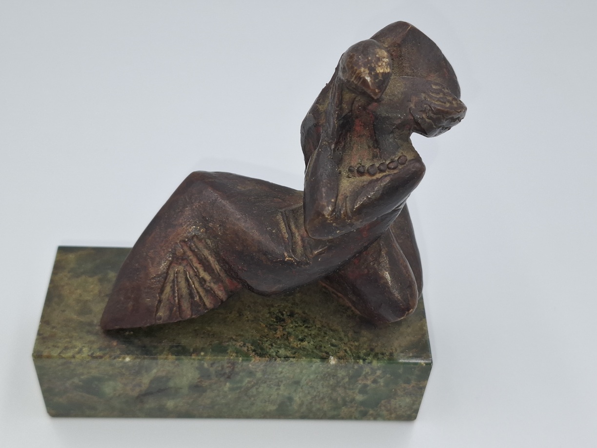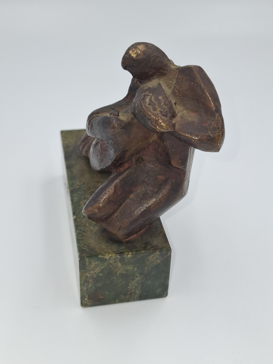 Rzeźba z brązu na podstawie z zielonego marmuru.