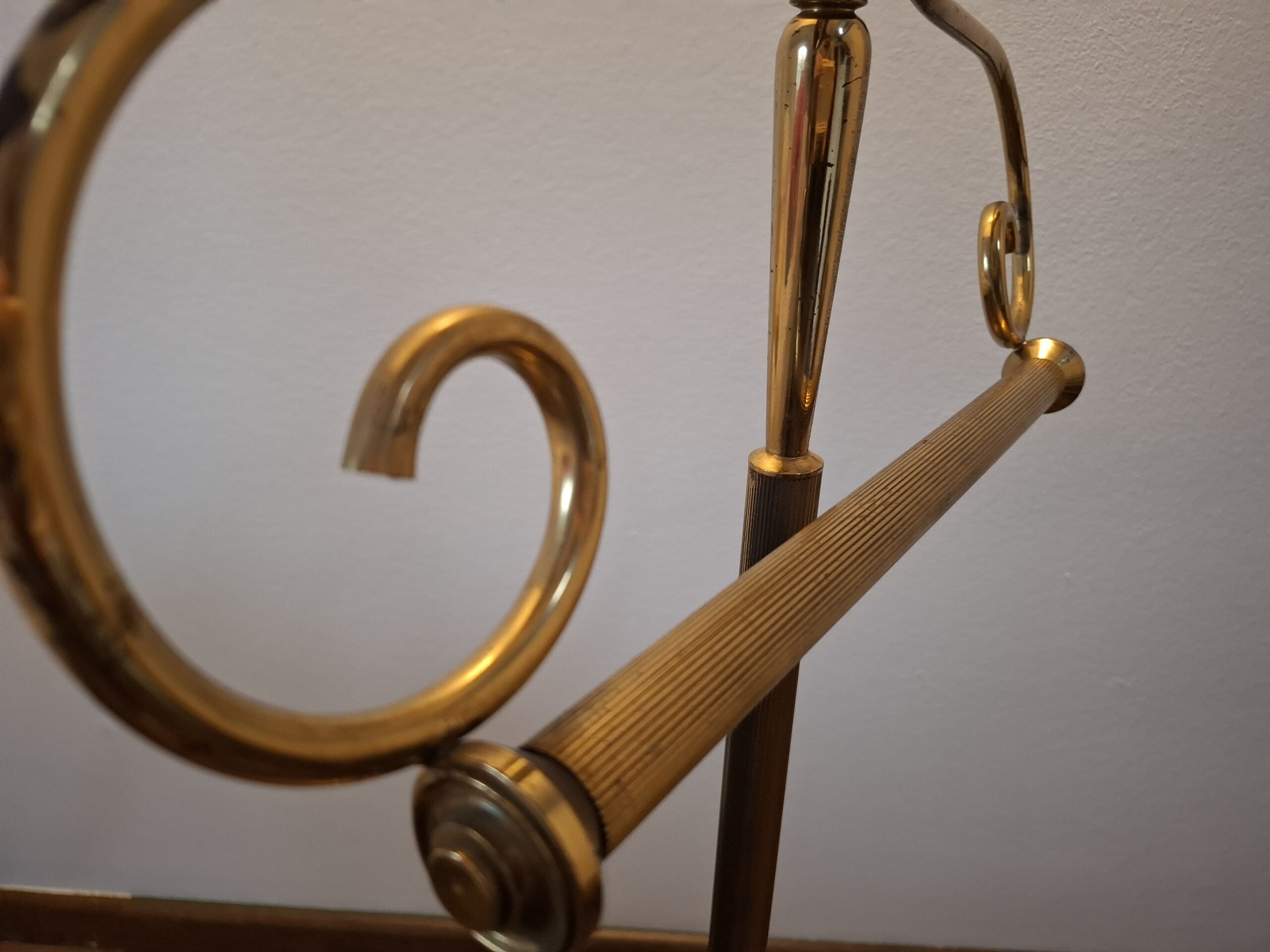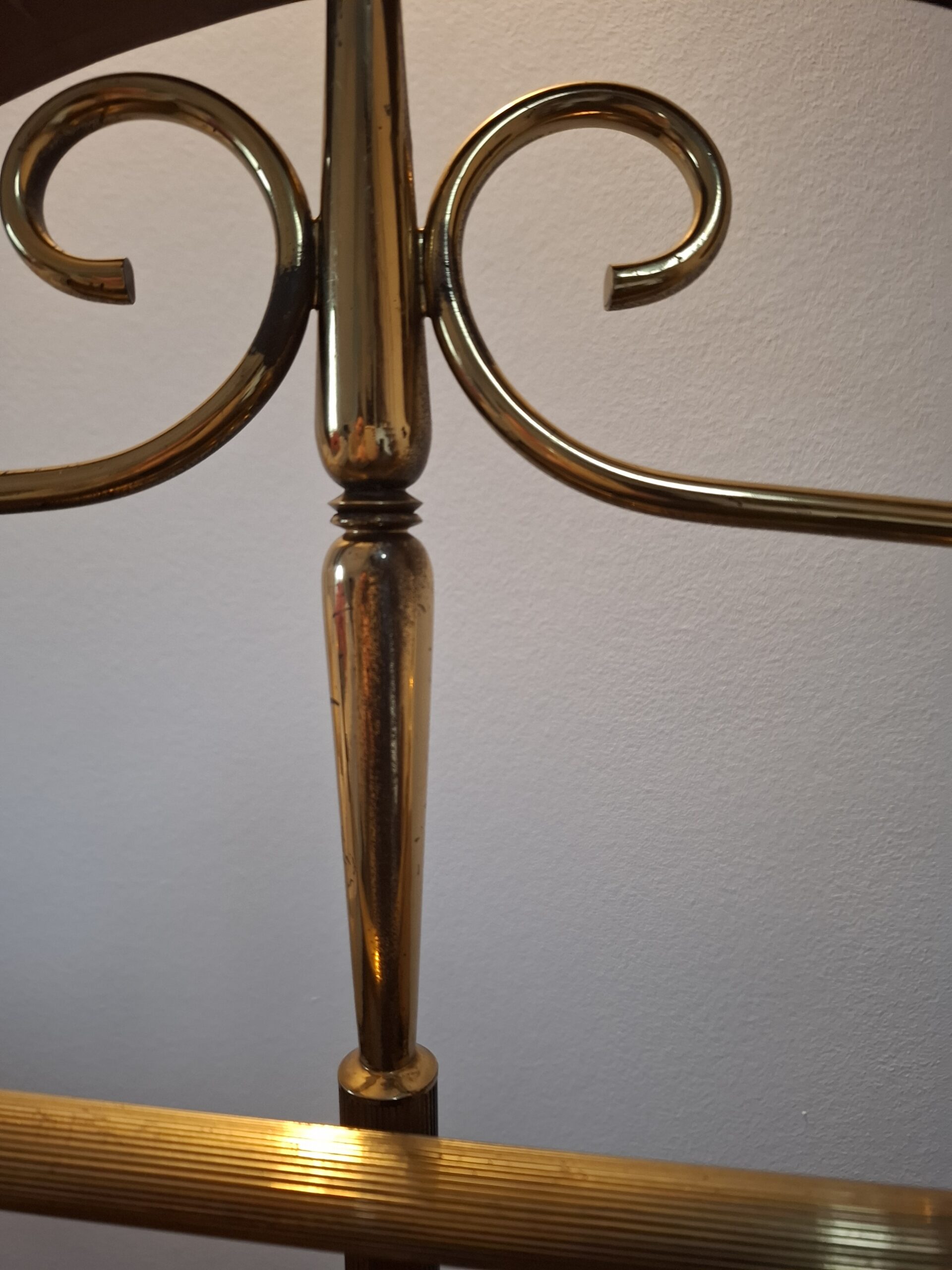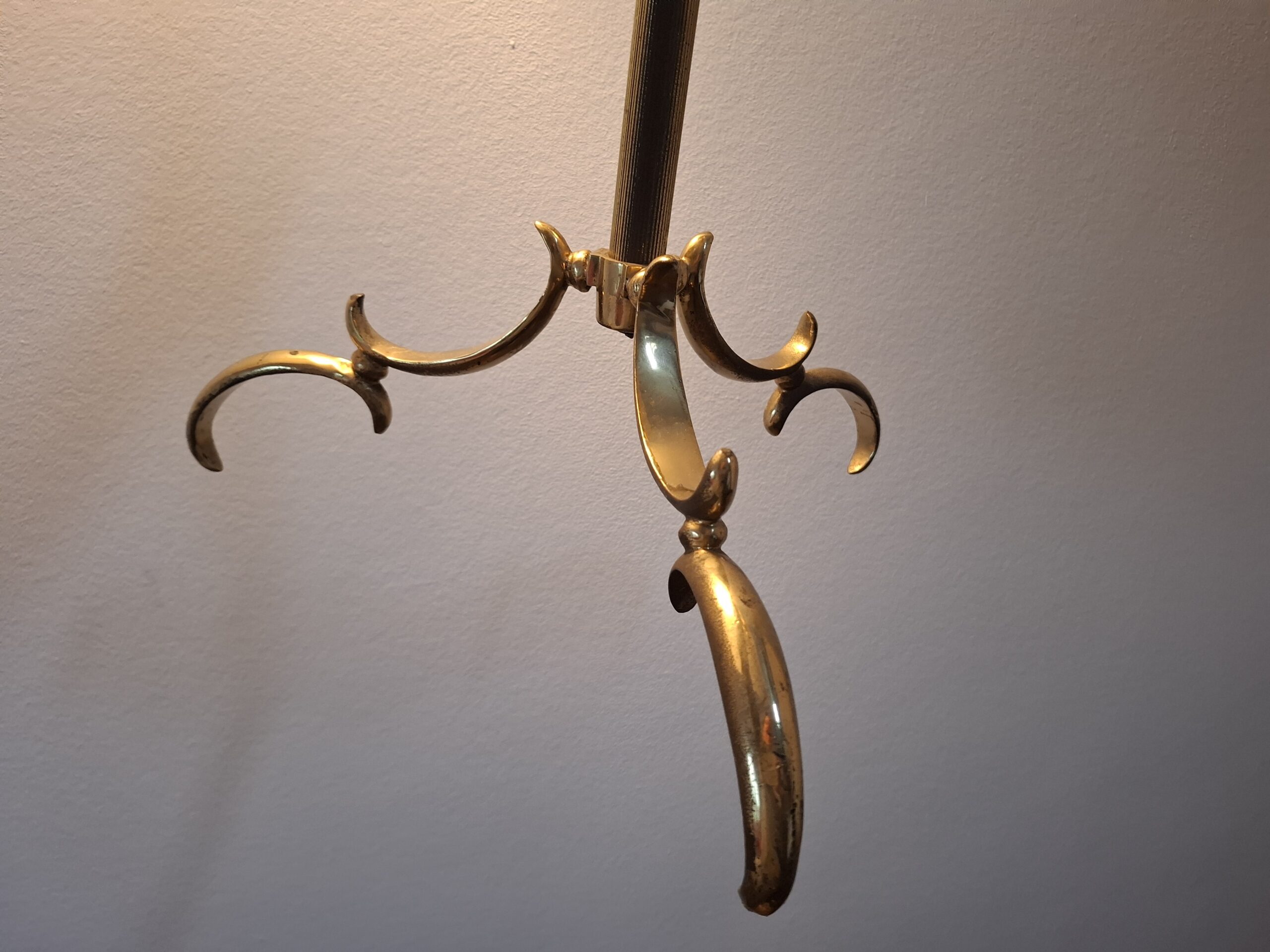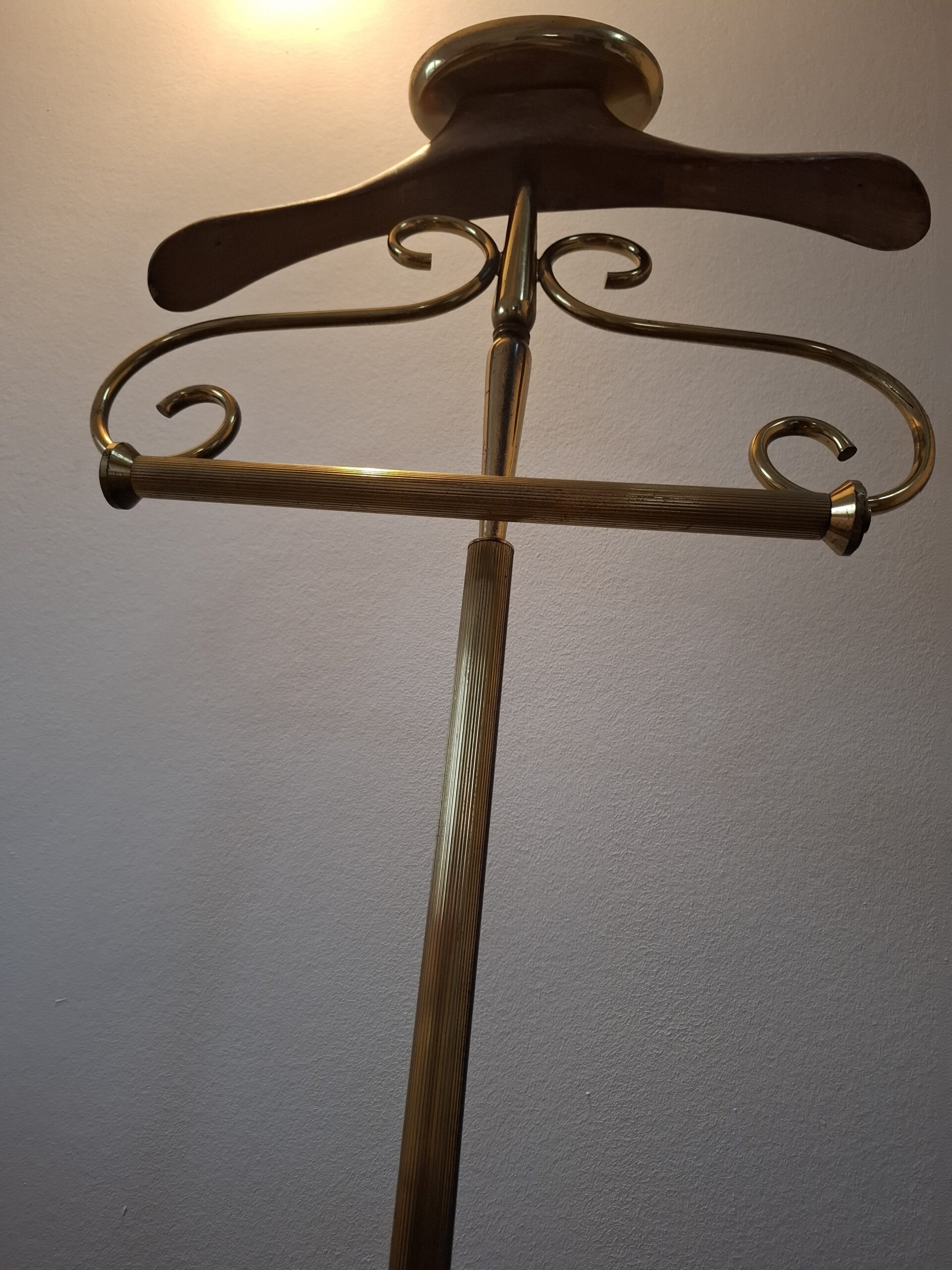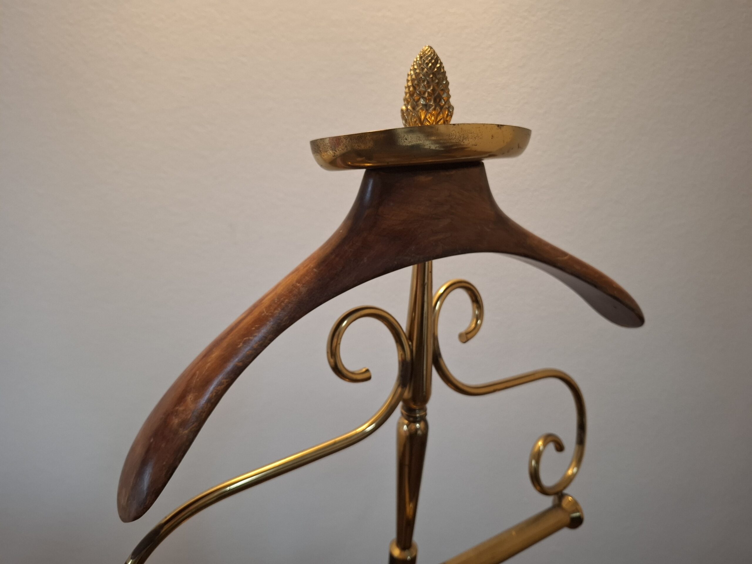 Wieszak kamerdyner, lokaj, tzw. valet stand, drewno mosiądz, semi antyk, lata 50-te XX w.