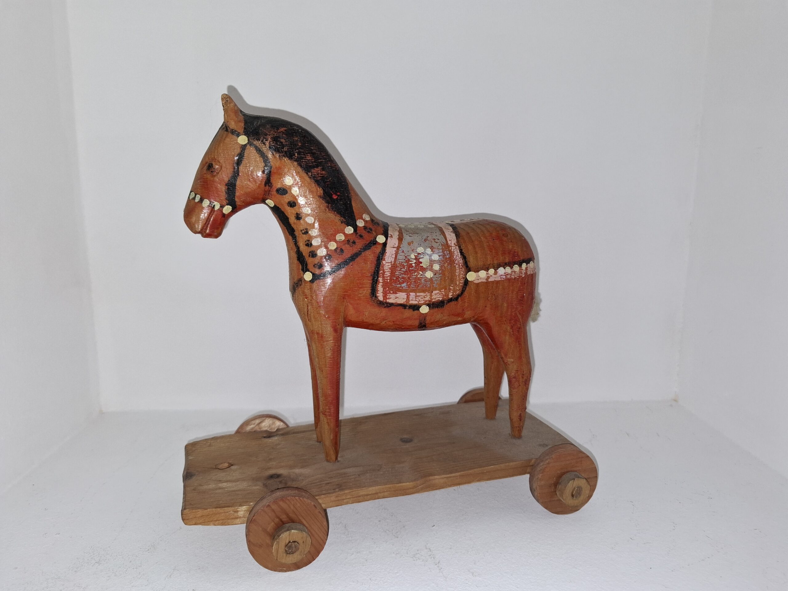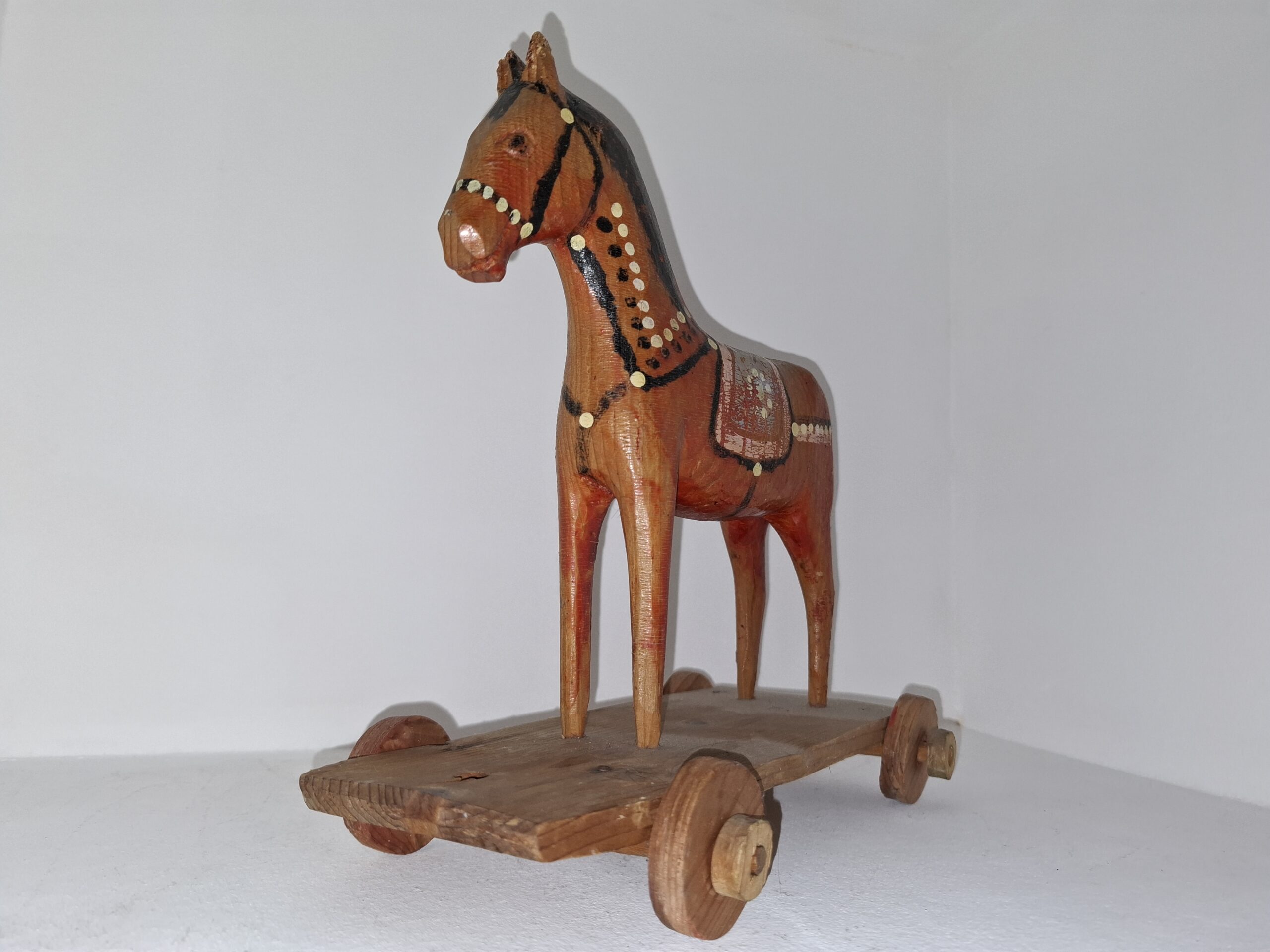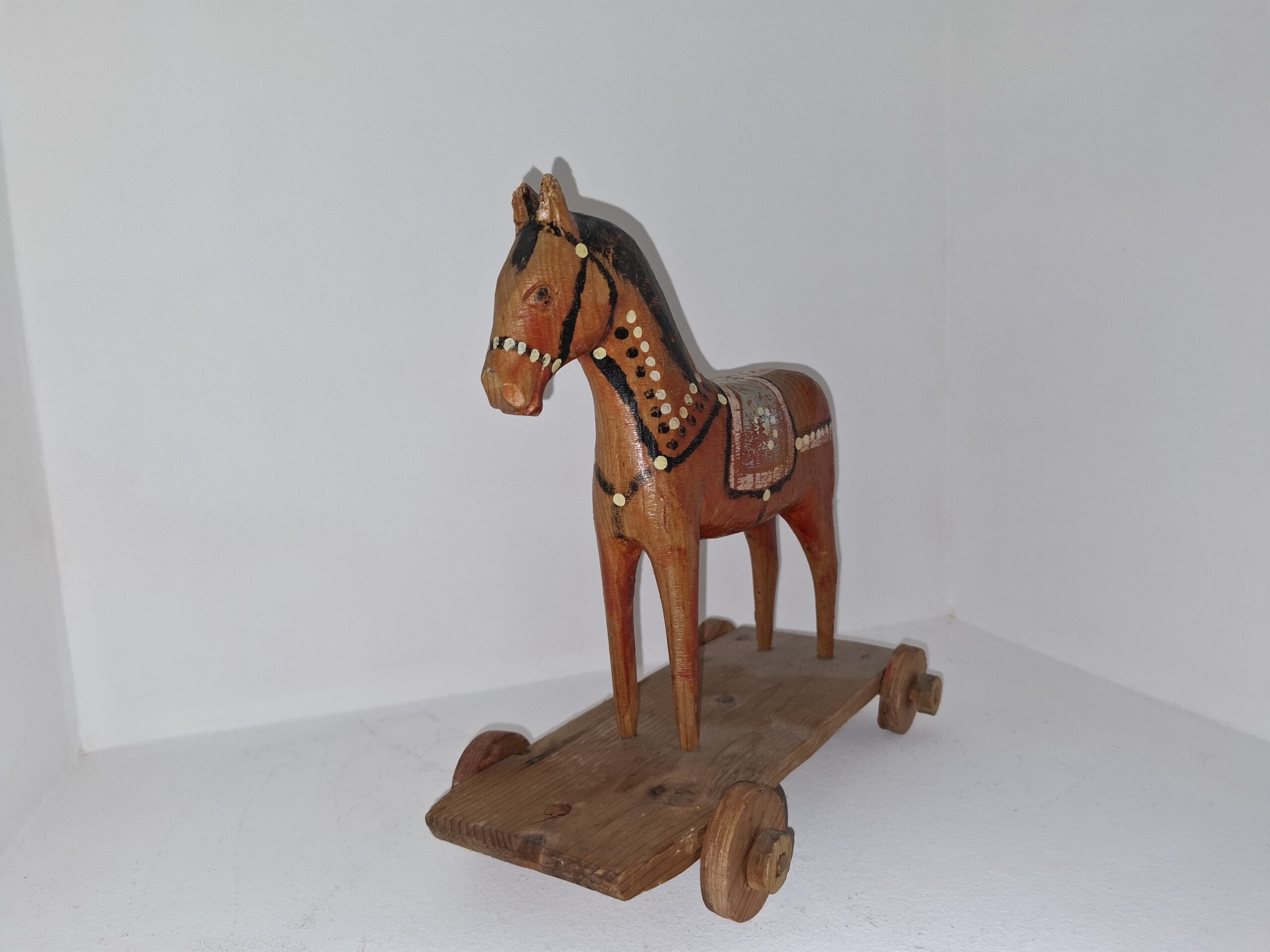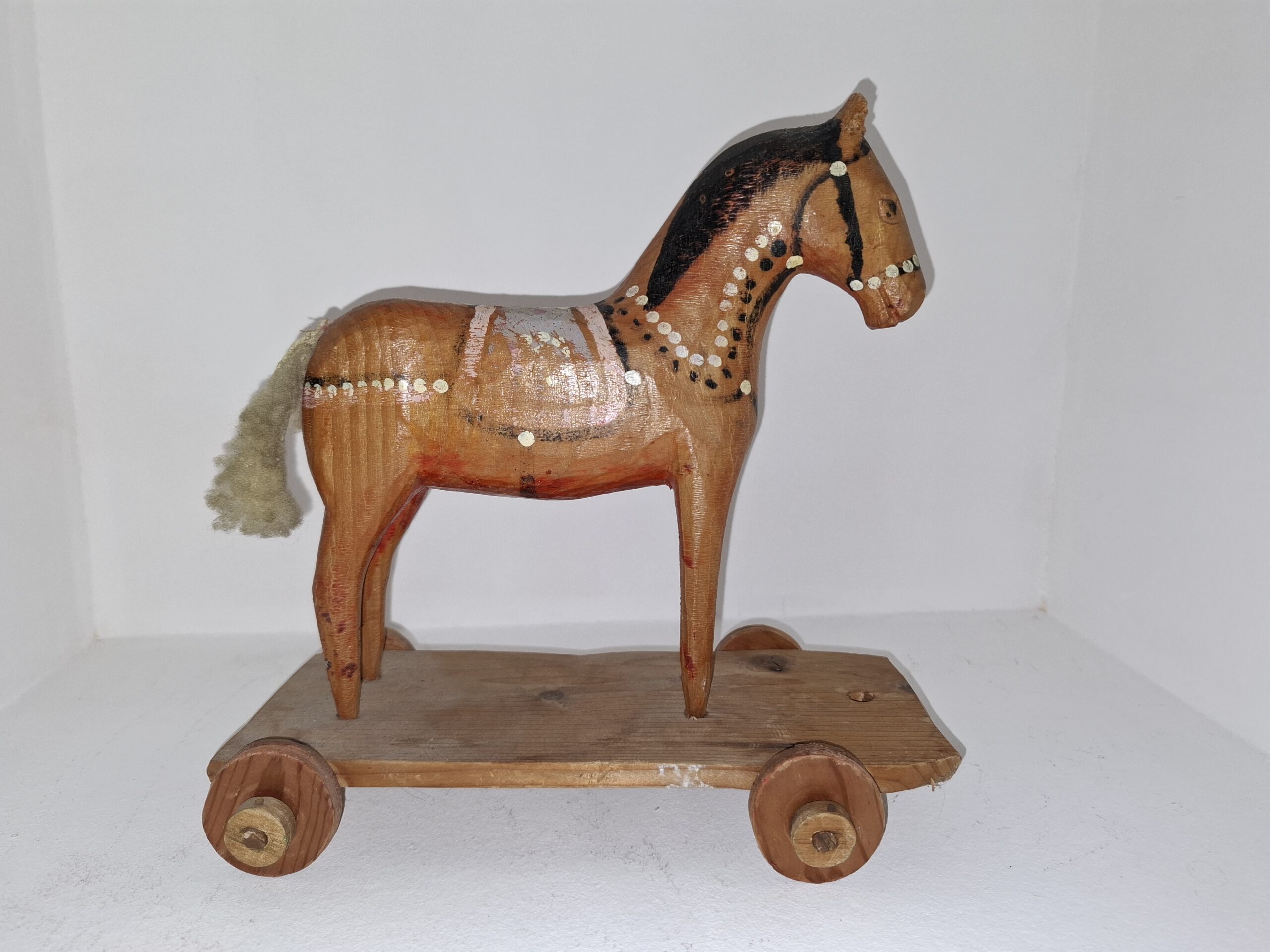 Drewniany, ludowy konik na kółkach, zabawka – wkrótce dostępna w sprzedaży