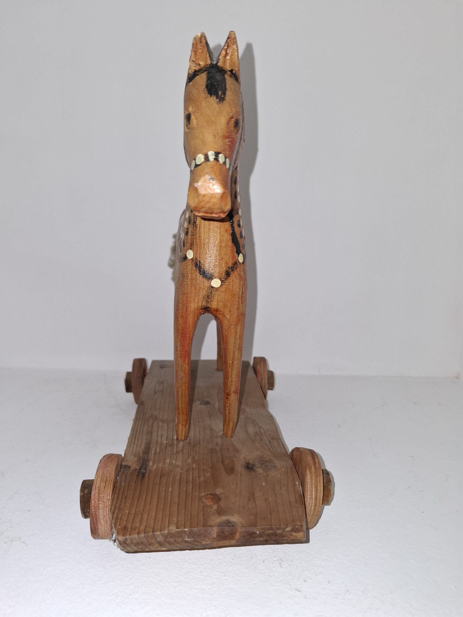 Konik ludowy na drewnianych kółkach, ręcznie malowany konik z czasów amerykańskich osadników