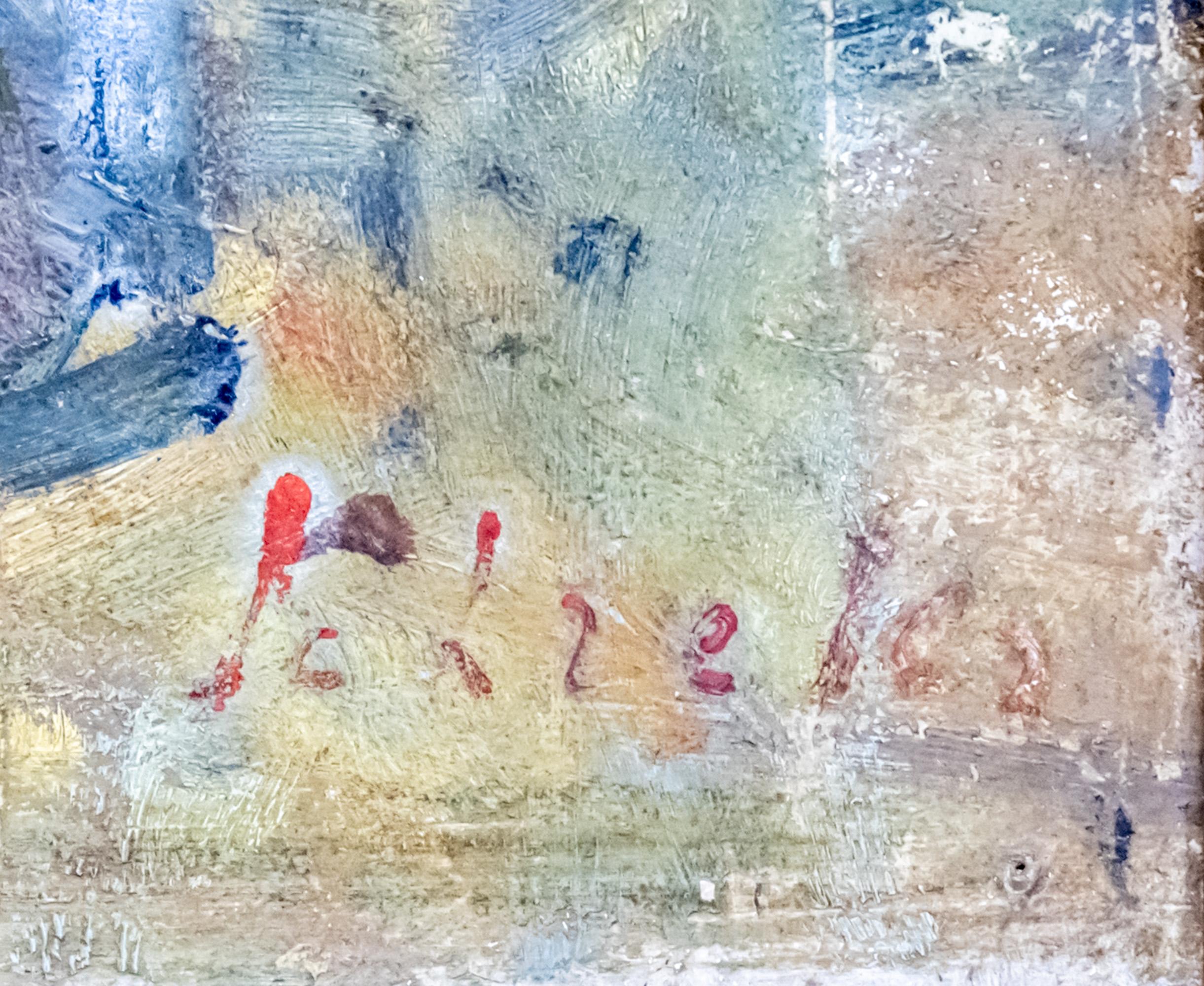 Obraz w stylu postimpresjonistycznym. Na odwrocie dwie etykiety w języku angielskim i niemieckim z oznaczeniem autora i tytułu.