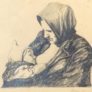 Adolf Hallman [1893 –1968 ], „Macierzyństwo”, rysunek z 1948 r., wym. 45×50 [rama], sygn. p./d. Wkrótce dostępny w sprzedaży