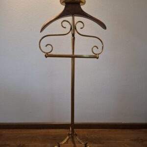 Wieszak kamerdyner, lokaj, tzw. valet stand, drewno mosiądz, semi antyk, lata 50-te XX w.