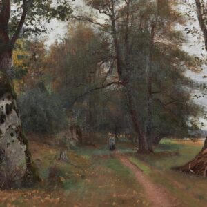 Karl Cederberg [1861-1904 ], „Spacer nad brzegiem jeziora”, obraz olejny na płótnie, XIX w., wym. ok. 100×80 cm [rama], 70×60 cm [płótno], sygn. l./d.