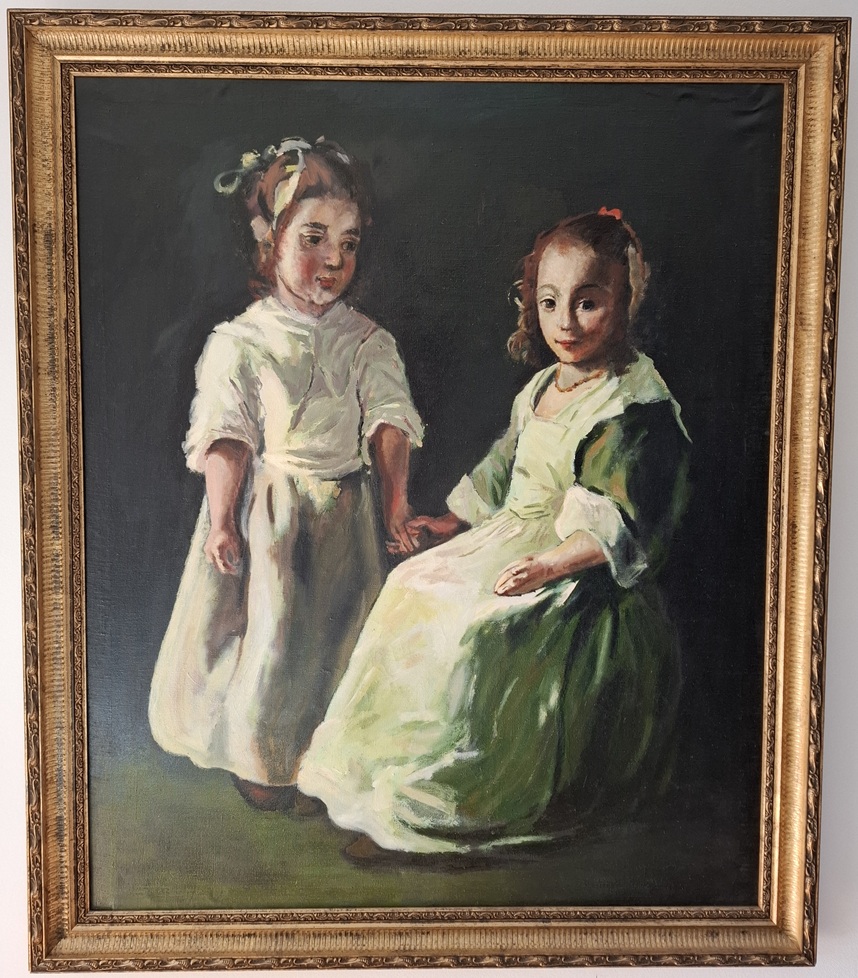 Na początku 2024 r. na rynku aukcyjnym pojawił się obraz Artura Markowicza przedstawiający dwie kilkuletnie dziewczynki w białych fartuszkach. Licytacja była zacięta, a ostateczna cena wielokrotnie przebiła estymację . Ku mojemu zdziwieniu, wkrótce ten sam obraz pojawił się ponownie, jako obraz nieznanego malarza. Zastanawiało mnie, co mogło być powodem wycofania się z zakupu osoby, która wylicytowała wysoką cenę za tę pracę. Ponownie wystawiona posiadała jedynie opis: „podpisany na odwrocie Artur Markowicz”. Sądziłam więc, że to z powodu braku sygnatury na awersie ktoś poddał w wątpliwość autorstwo, a podnoszone wkrótce po zakupie wątpliwości miały związek z ponownym wystawieniem tego dzieła z innym opisem, niewskazującym już, że jest to na pewno obraz Markowicza. Oferowany obraz miał w prawym górnym rogu niewielkie pofalowania płótna. Oprawiony był w starą, solidną, zdobioną i złoconą, drewnianą ramę. Grubo kładziona farba przebijała na odwrocie płótna. Był też  podpisany na ramie „Artur Markowicz”. Ponadto na odwrocie płótna widniały niezidentyfikowane oznaczenia mogące być numeracją inwentaryzacyjną oraz nieczytelna pieczęć naniesiona fioletowym tuszem i odręcznie naniesione inicjały „A.M”. Nie wykluczałam także specyficznej gry na obniżenie ceny przy jednoczesnym odstraszeniu niedawnych wpółlicytantów, zasiewając w nich wątpliwość co do autentyczności tego skądinąd imponującego obrazu. Po roku mogę przedstawić jedną  z hipotez dotyczącą powstania dzieła i, co ważne, może ona przemawiać za tym, że obraz rzeczywiście wyszedł spod pędzla Artura Markowicza.