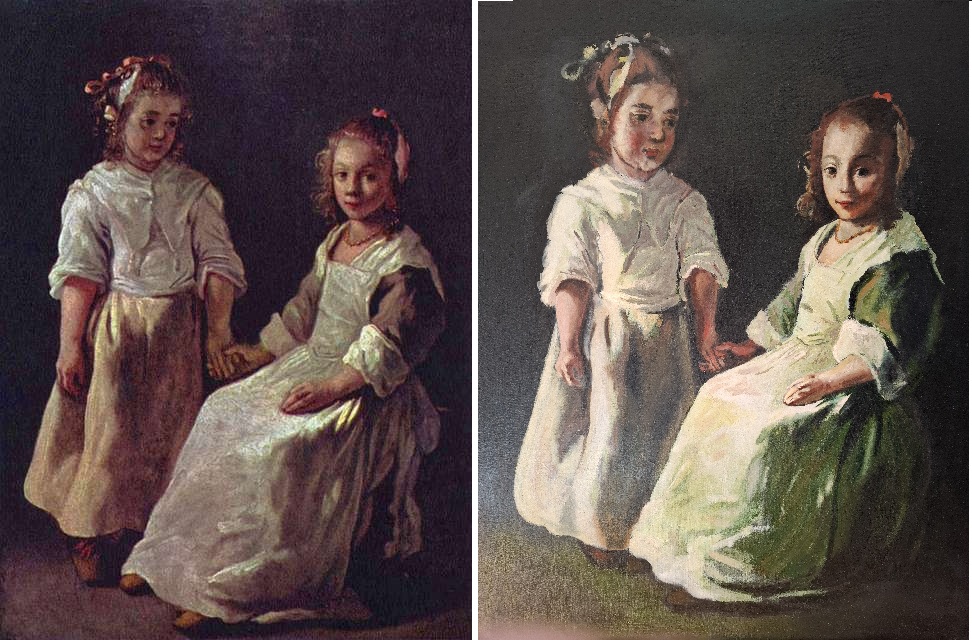 Otóż 1908 r. Adolphe Schloss, niemiecki kolekcjoner sztuki żydowskiego pochodzenia, podarował dla holenderskiego Boijmans van Beuningen Museum niewielki obraz z XVII w., przedstawiający dwie dziewczynki. Obraz o wymiarach 30,5×41,5 cm był autorstwa anonimowego malarza z kręgu Louisa Le Naina [początkowo uważano nawet to za dzieło samego Le Naina]. Obecnie  praca ta znajduje się w muzealnym magazynie. [więcej na https://www.boijmans.nl/en/collection/artworks/2446/two-girls ]. Jaki to ma związek z Markiewiczem? Otóż wkrótce po podarowaniu obrazu holenderskiemu muzeum, do Holandii przybył Artur Markowicz. Wpierw odbył on podróż do Jerozolimy [1907-08], następnie w 1910 r. do Włoch, a w latach 1911-1912 do Belgii i Holandii. W tym kraju mieszkał także jego brat, więc malarz odwiedzał Holandię także w latach dwudziestych. Podczas tych podroży, jak wskazują obecnie marszandzi oferujący jego płótna, szukał tematów do swoich obrazów. Byłoby rzeczą bardzo dziwną, gdyby Markowicz nie odwiedzał muzeów podczas swych europejskich peregrynacji.